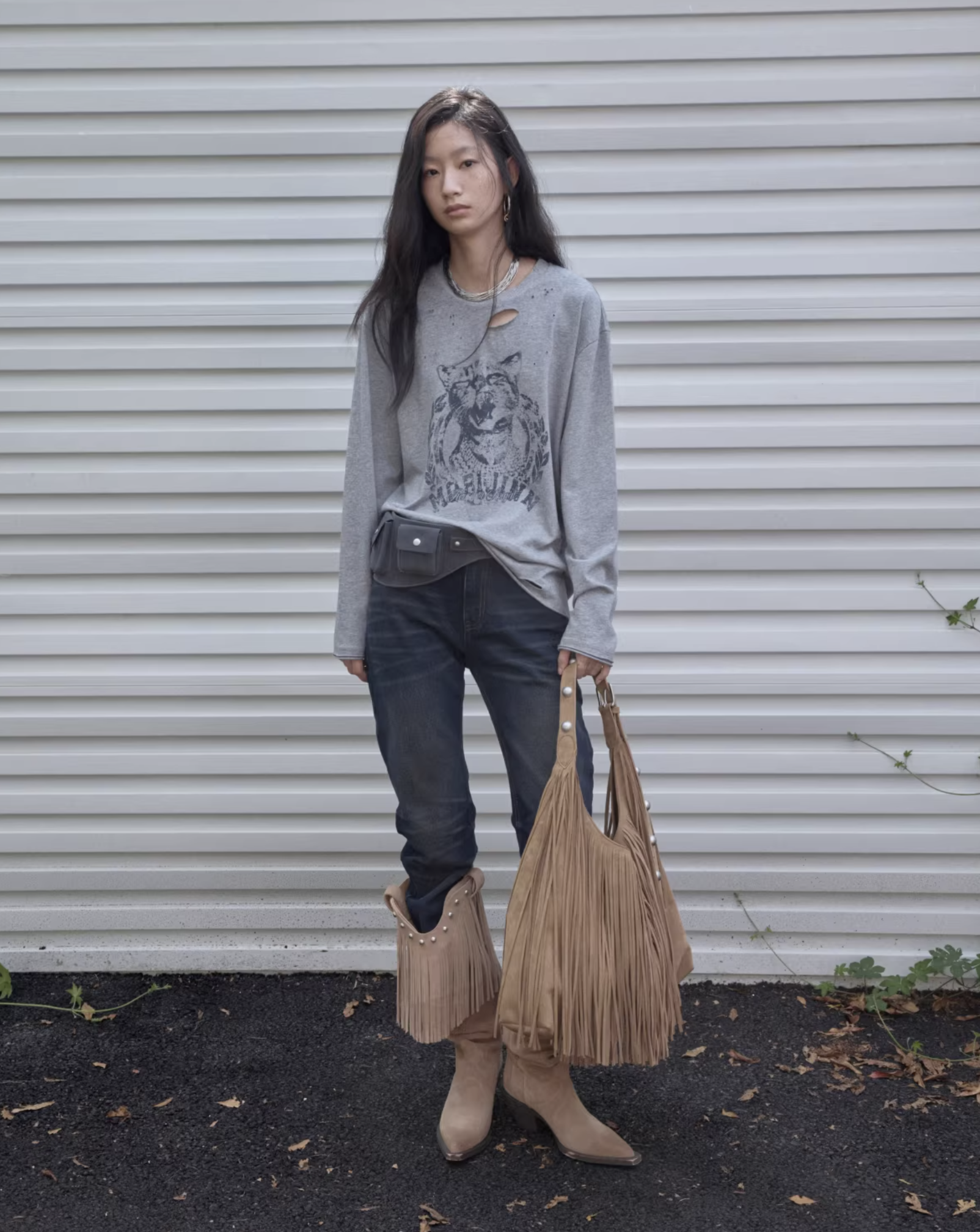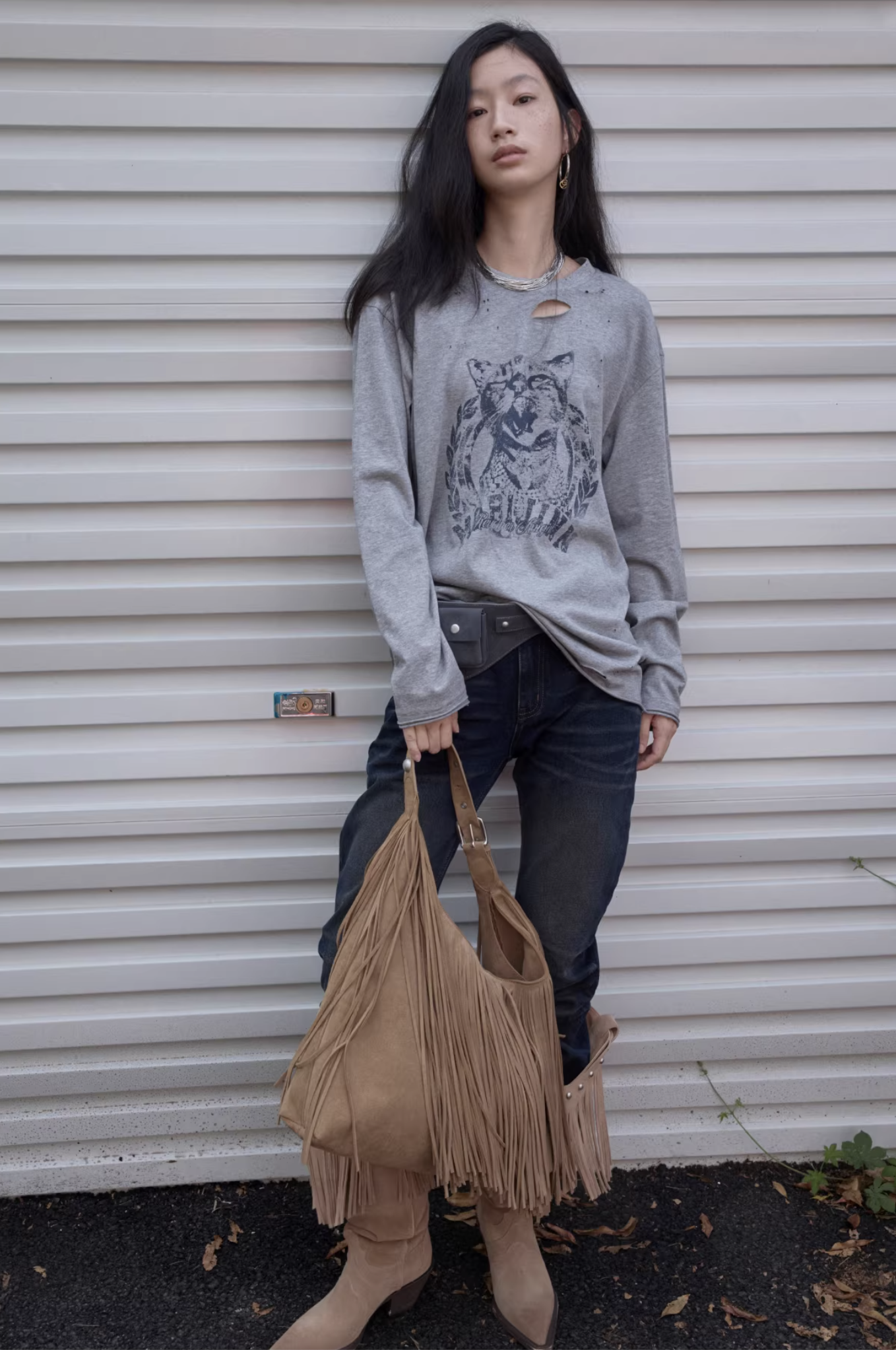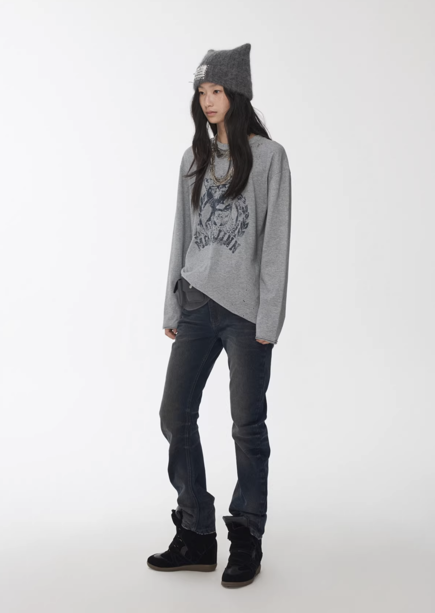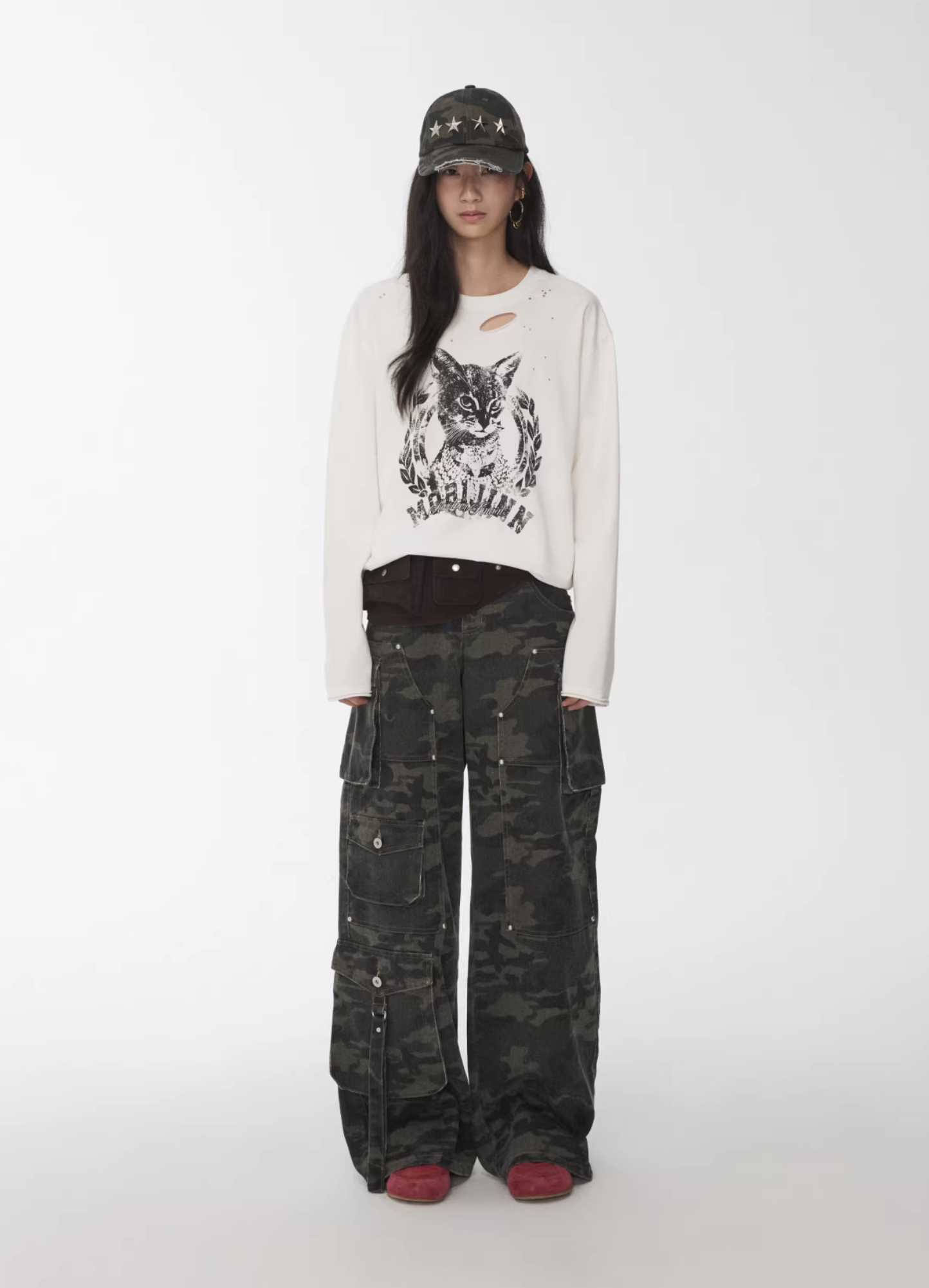 ✰ This relaxed-fit long-sleeve T-shirt features a slightly dropped shoulder design for excellent drape and comfort. The piece uses a perforated distressing technique to create a worn-in, vintage effect, complemented by playful cat-and-dog themed prints that add a touch of street-style charm. The double-layer raw-edge treatment at the hem and cuffs enhances its textured, layered aesthetic. Washed for a naturally faded finish, the tee delivers a retro, lived-in appeal. Crafted from 220g pre-washed Korean cotton jersey, it offers a soft yet resilient handfeel with superior breathability — balancing quality craftsmanship and effortless daily wearability.