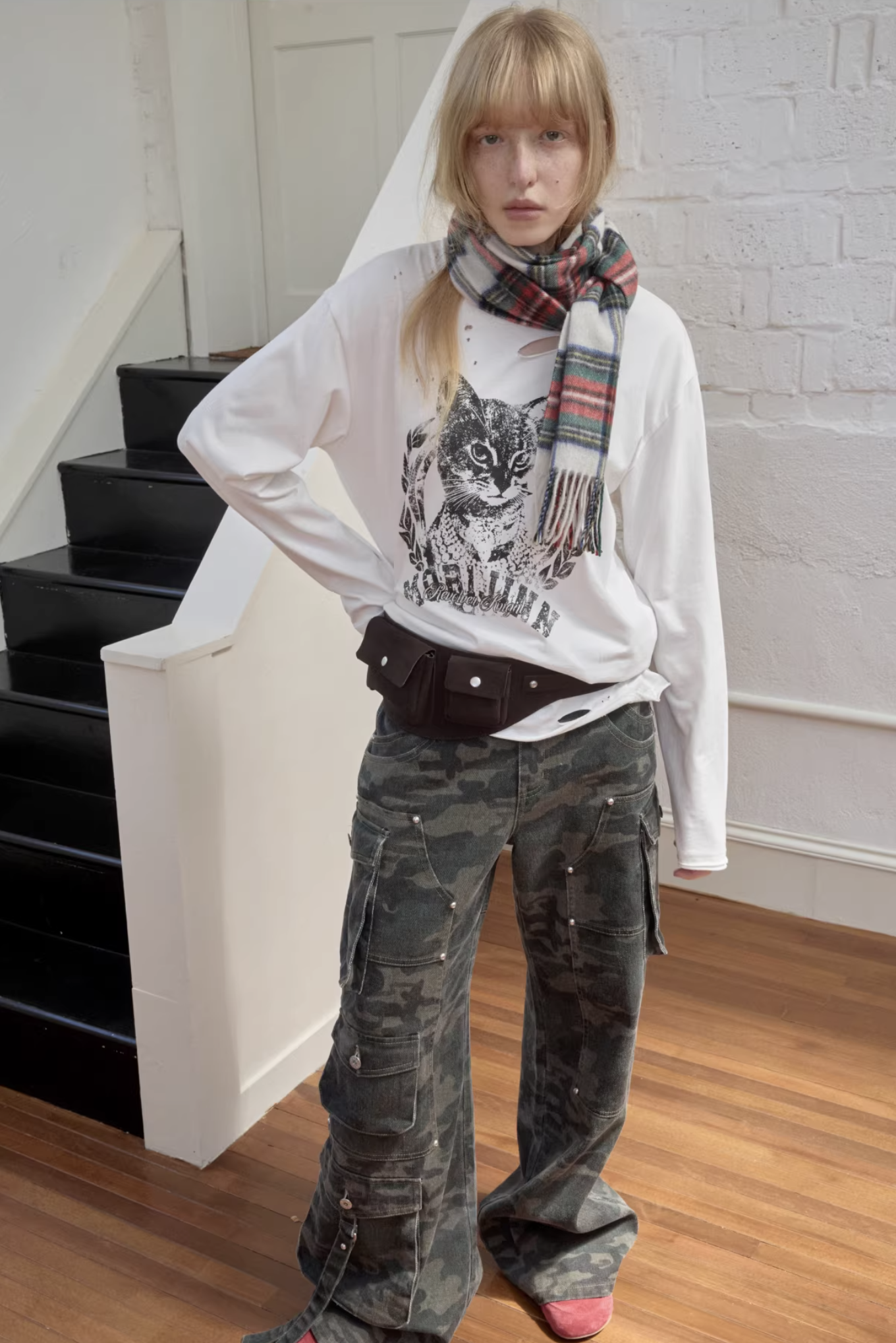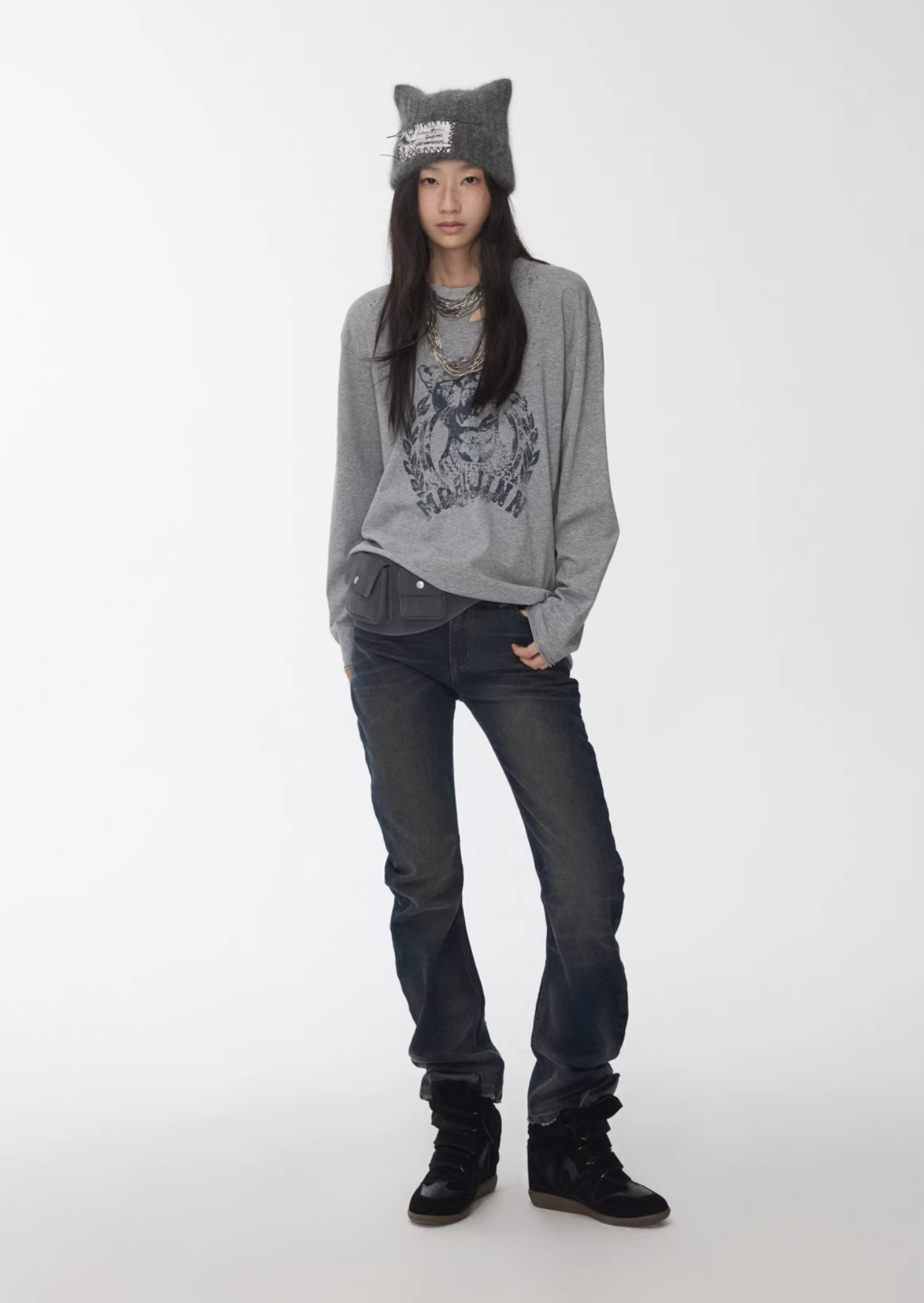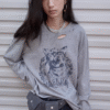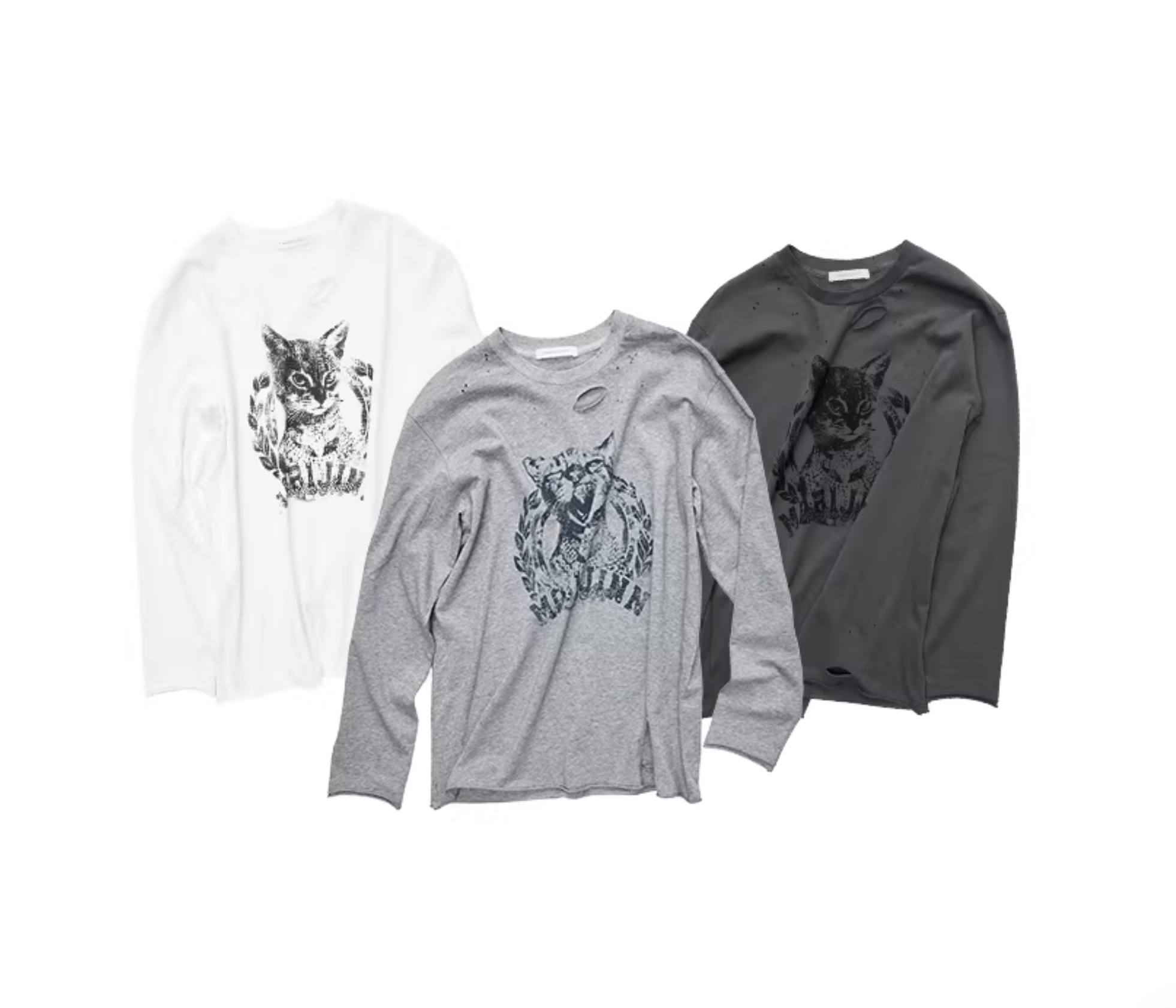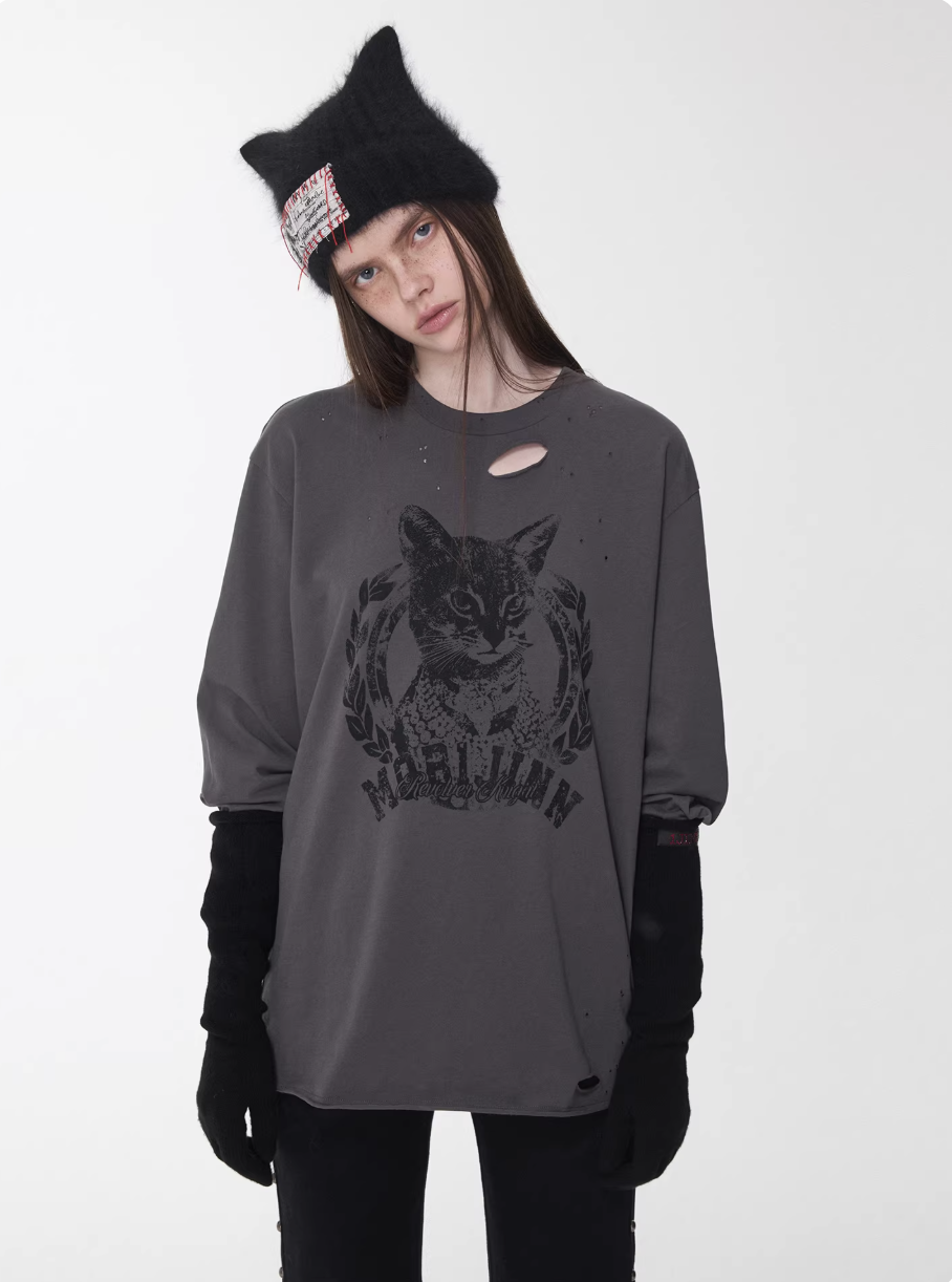 ♱ VINTAGE CAT PRINT DISTRESSED LONG-SLEEVE TEE – 3colors ♱ PRE-ORDER 10 DAYS