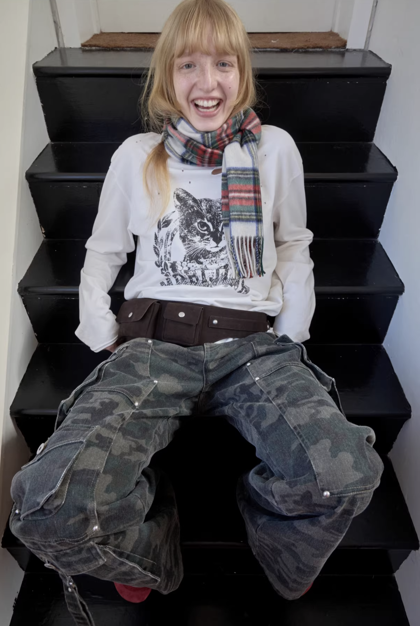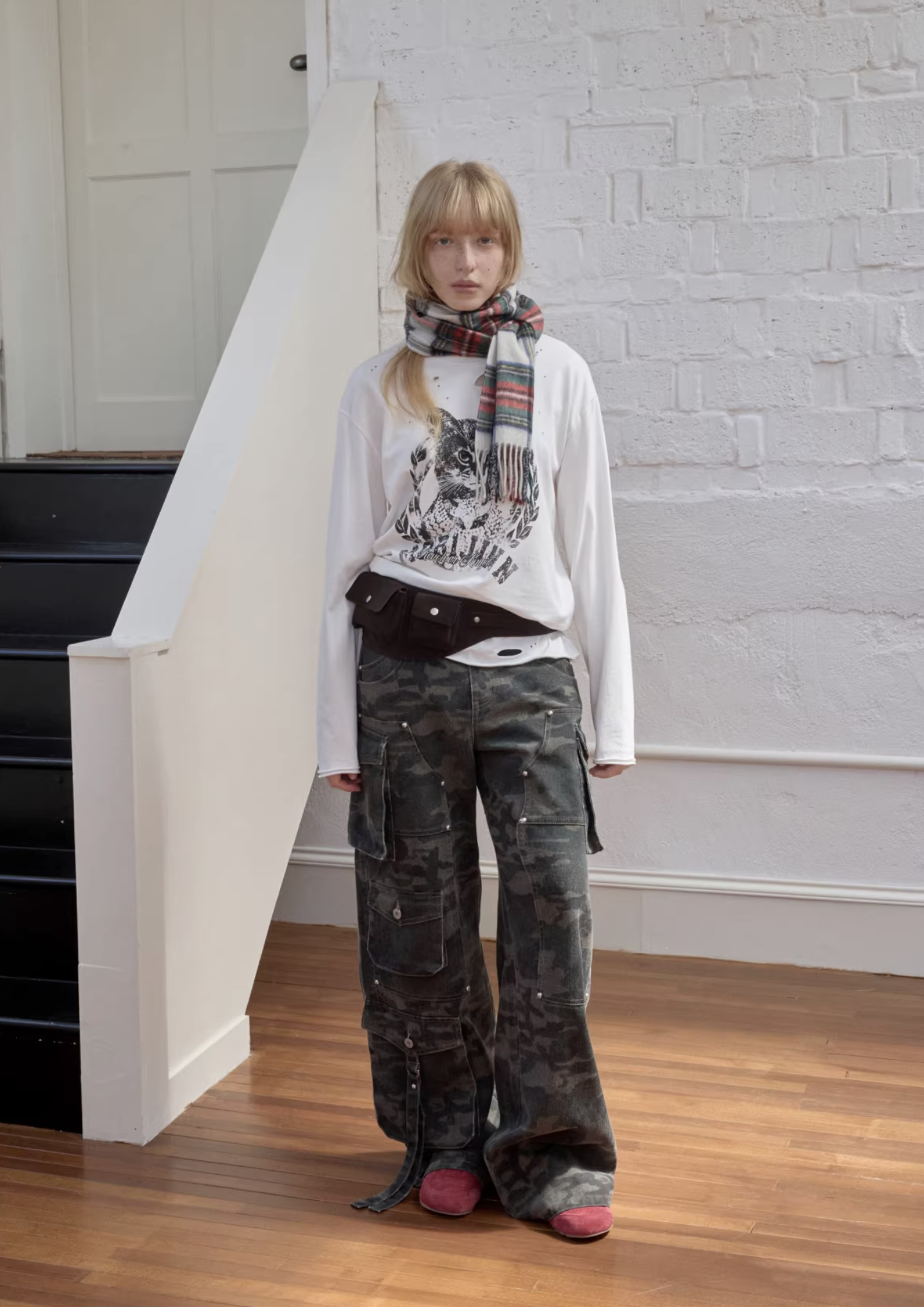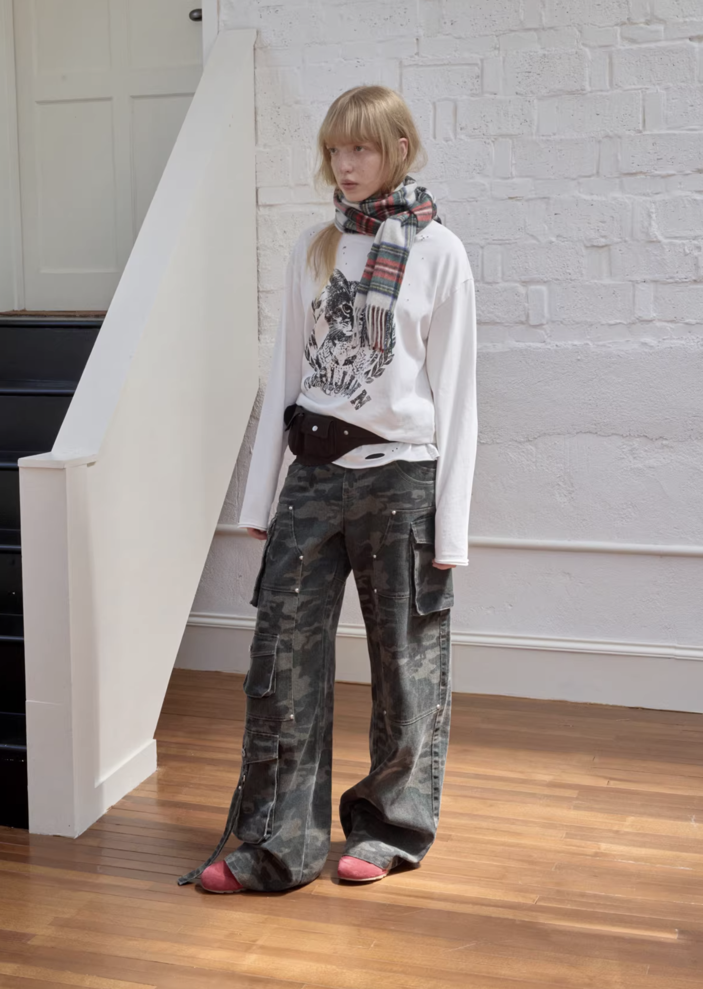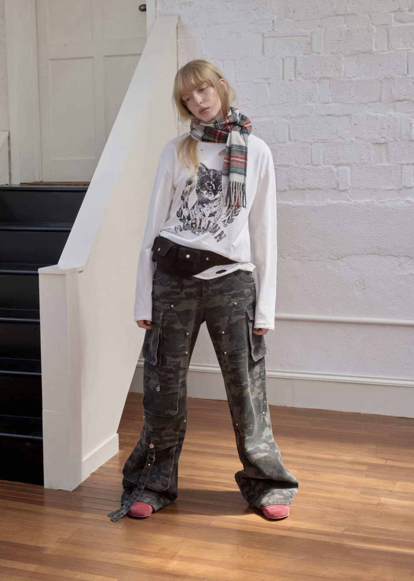 ♱ VINTAGE CAT PRINT DISTRESSED LONG-SLEEVE TEE – 3colors ♱ PRE-ORDER 10 DAYS