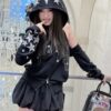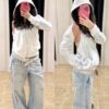 ✰ A hooded backless vest sweatshirt Features a detachable hood and sophisticated star rhinestone design, with an inner shirt that doubles as a sleeveless top. It features a halter-neck and zip-front that elegantly reveals the back curve. The loose and casual fit easily creates a new lazy street style, suitable for both single and layered wear.