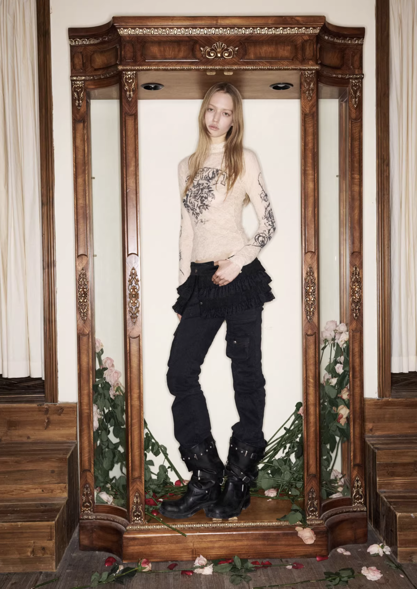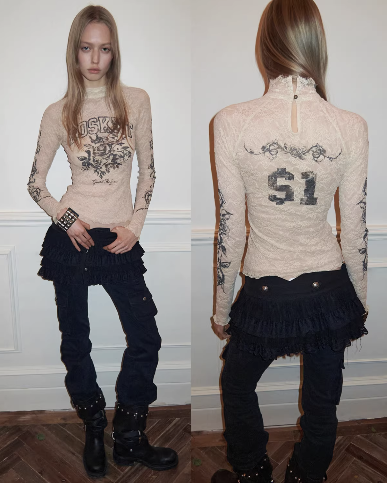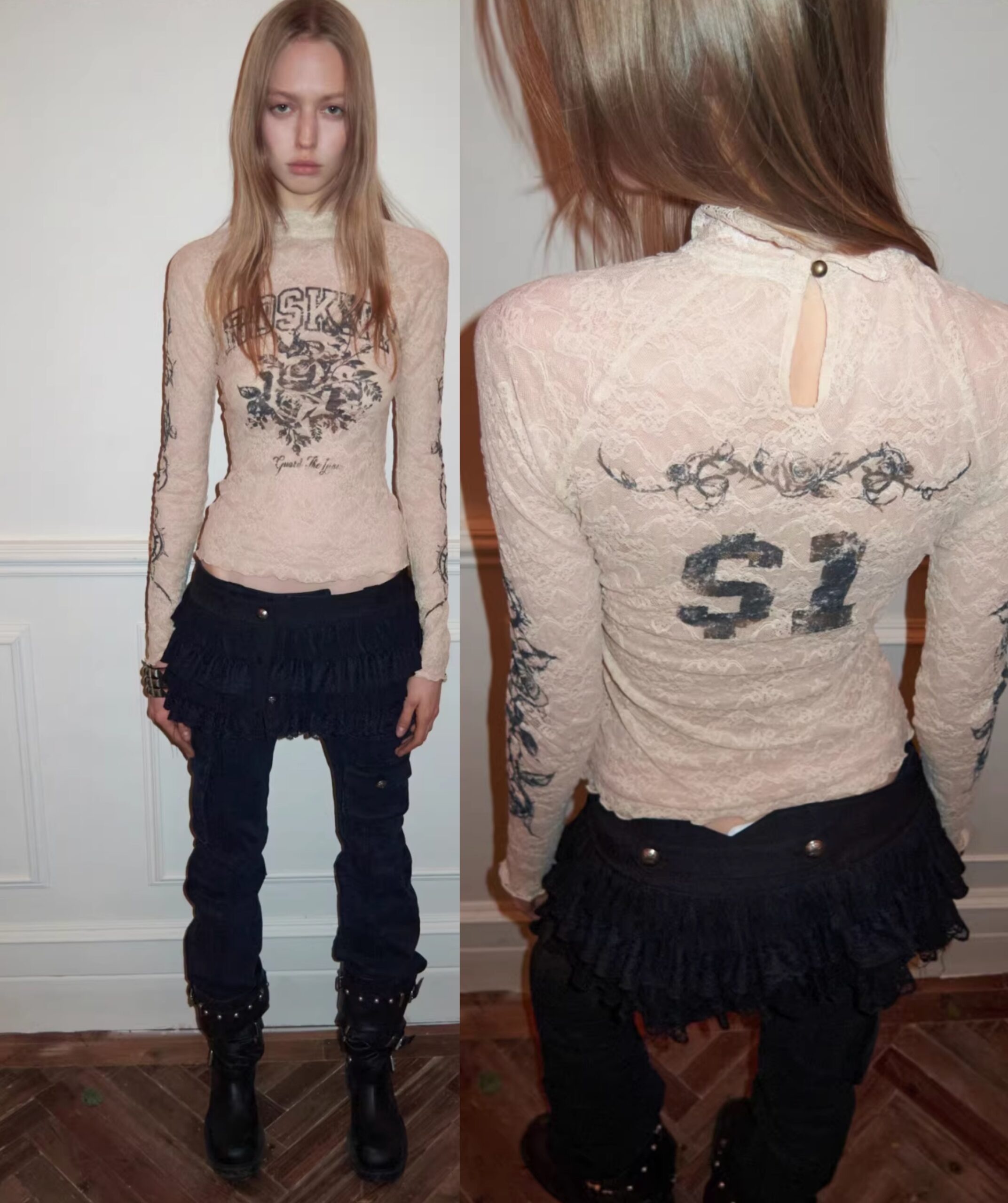 ♱ VINTAGE ROSEI LACE PRINT SHEER TOP ♱ PRE-ORDER 10 DAYS