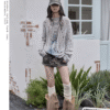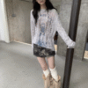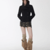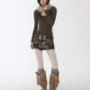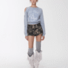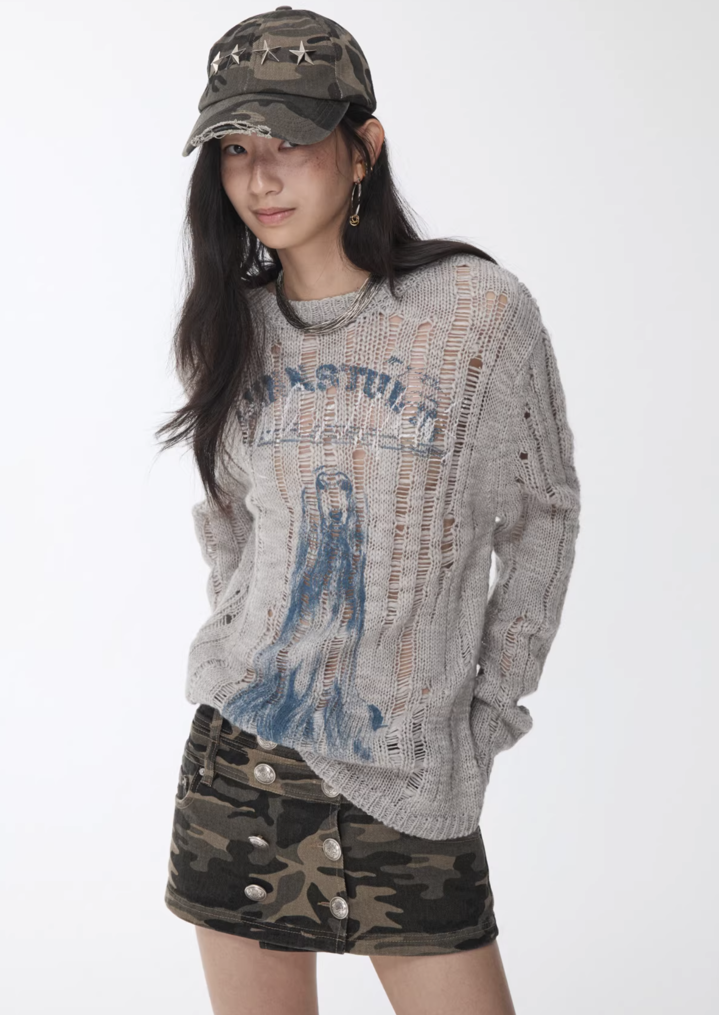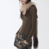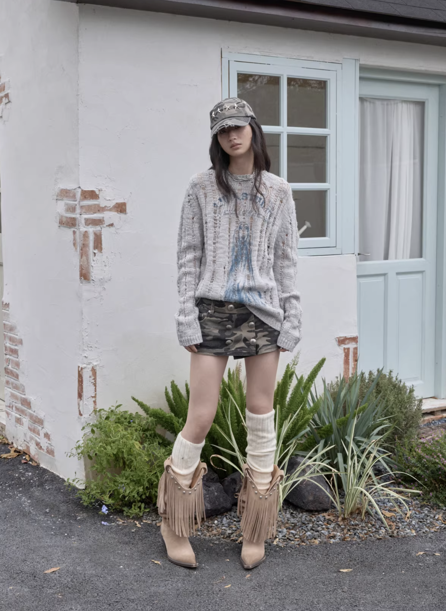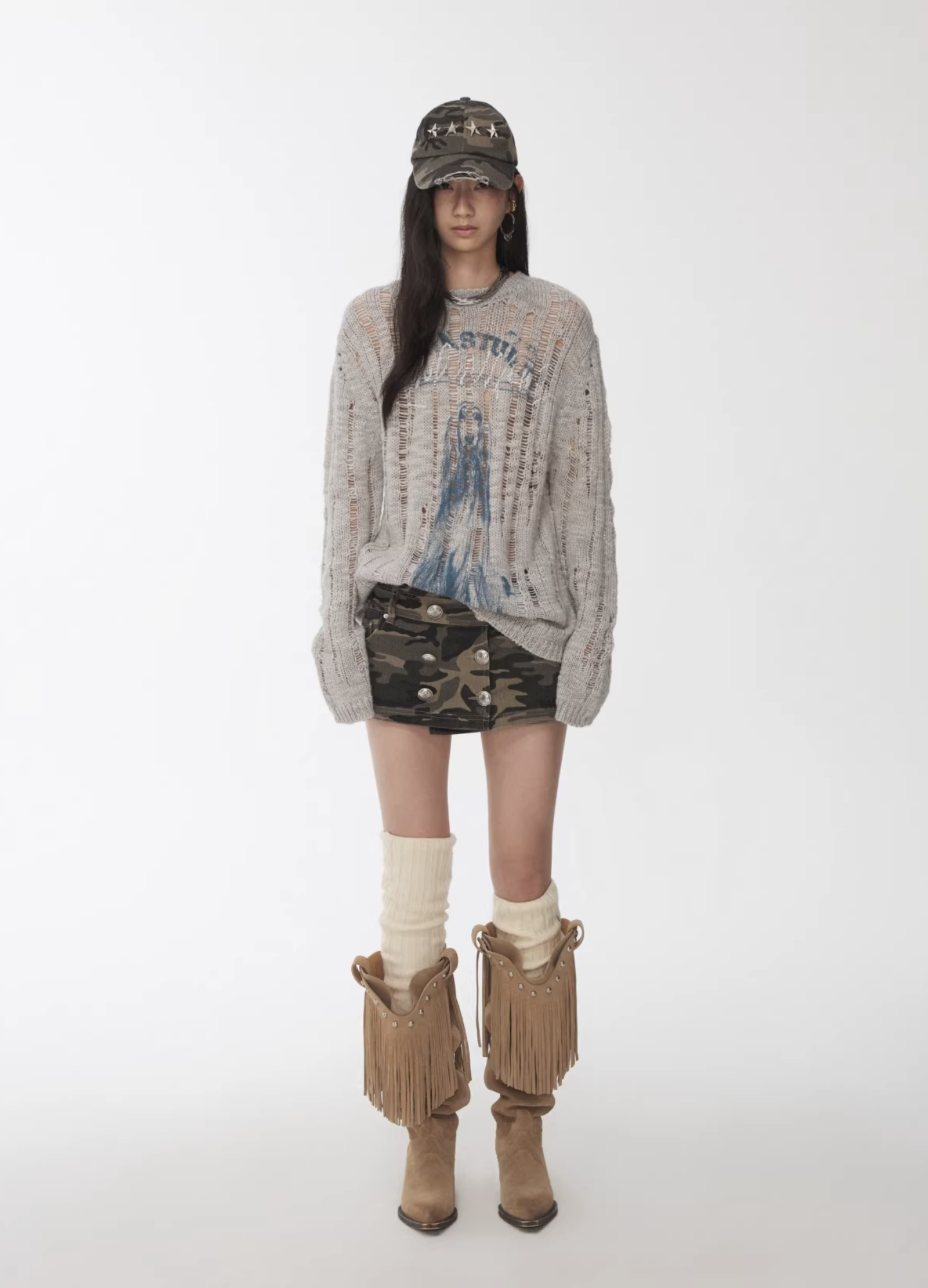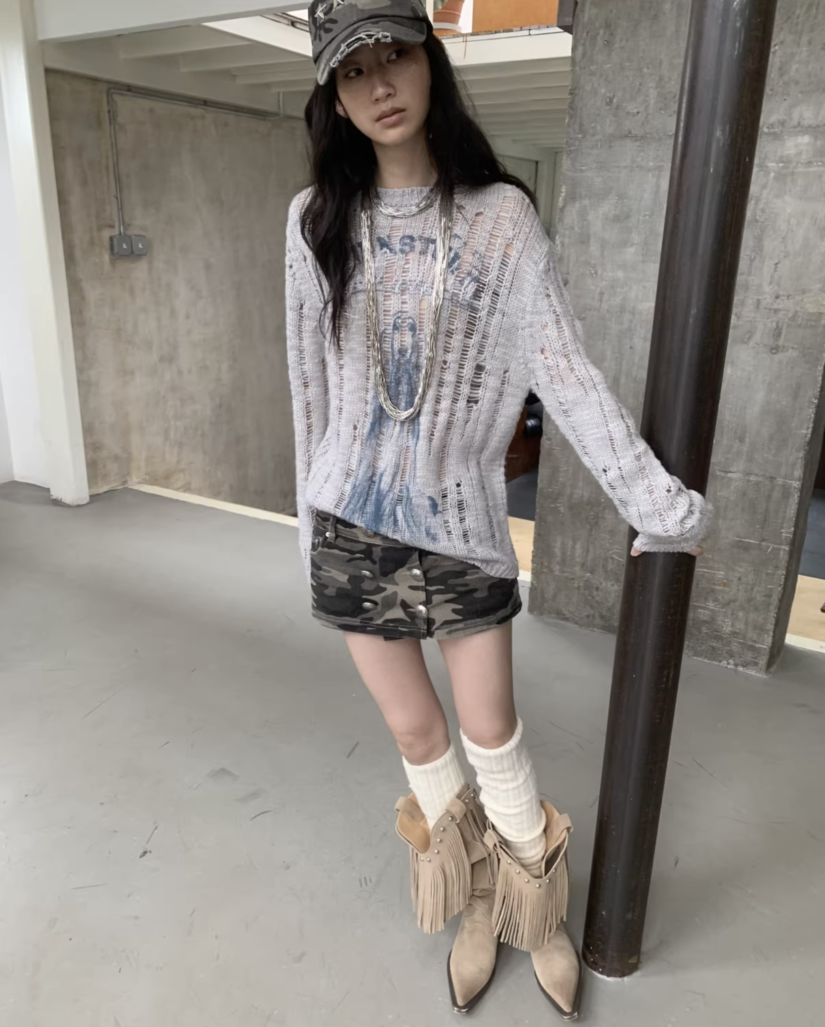 ✰ A mini camouflage low-rise skort with a structured A-line silhouette, wrap-style front panel, accented by custom silver-tone buttons double-row buttons at the waistband and vertical decorative buttons, belt loops, and classic pocket detailing, giving a bold Y2K military-inspired streetwear vibe.