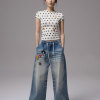 This is regular shoulder and fitting style, fitting the curves and optimizing the body proportion. Custom letter hot – fix rhinestones, carefully selected imported shiny rhinestones, ironed with a high – temperature special machine, the texture is shiny and not easy to fall off, with rich visual effects. The cuffs and hem adopt a custom edging process, which is small and delicate. The brand’s original small animal stickers.