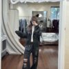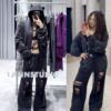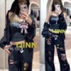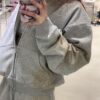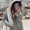 ✰ The Mud Dyed Rhinestone Hooded cardigan and Sweatpants in A dark-colored and gray is designed for both comfort and style. Features an adorable 3D cat ear design and oversized zip-up hoodie and a sophisticated rhinestone design, this piece effortlessly blends casual fashion with elegance. Pair it with our Mud Dyed Rhinestone wide-leg pants featuring a ripped design. JING’s selected cotton-spandex blend provides a luxurious feel and breathability.