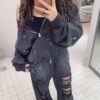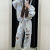 ✰ The Full Set Includes: Hooded cardigan + Ripped Sweatpants