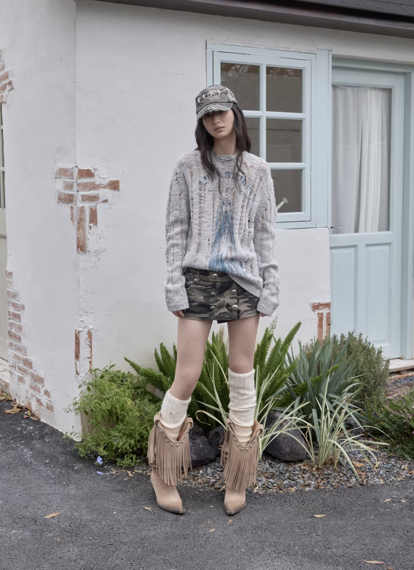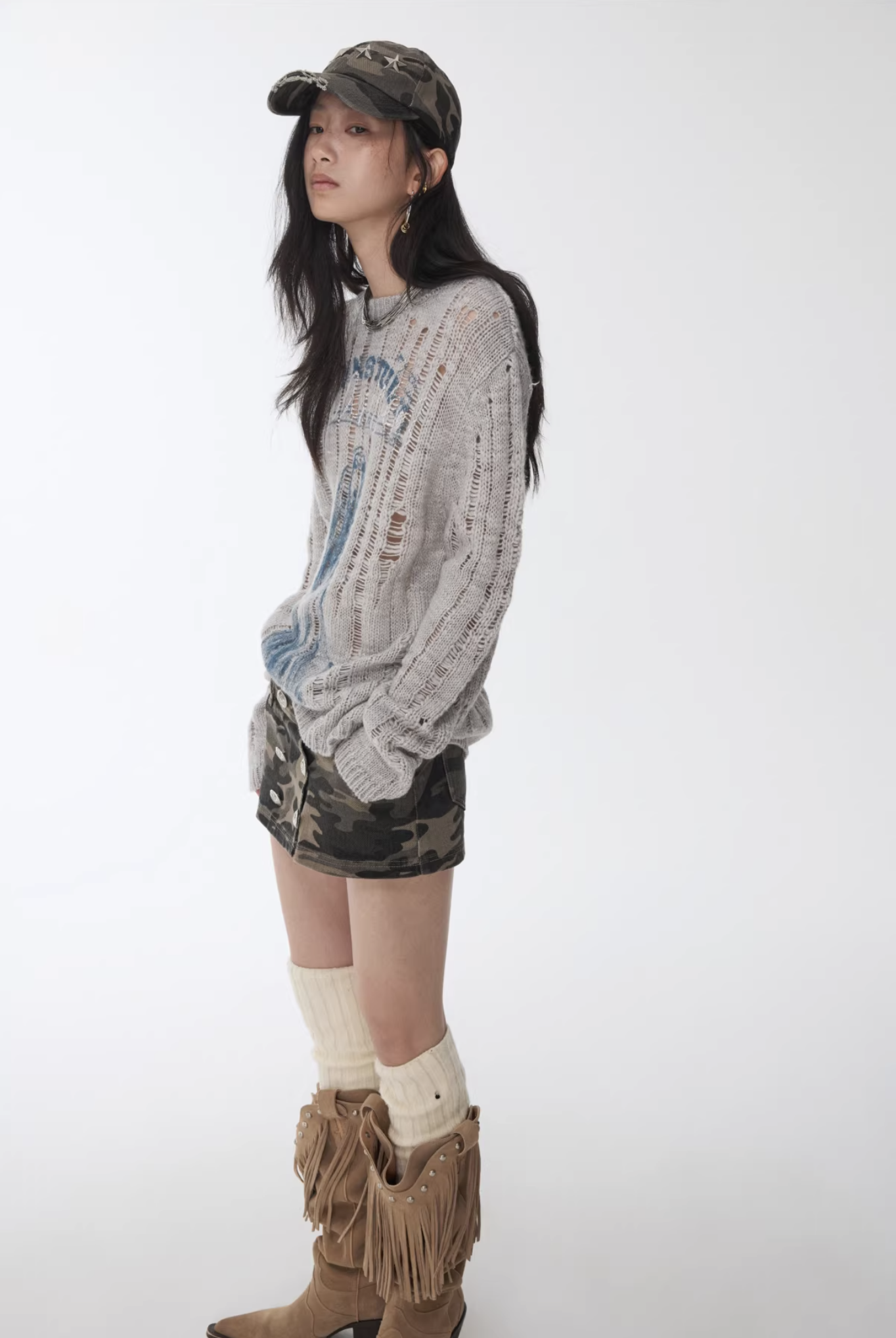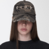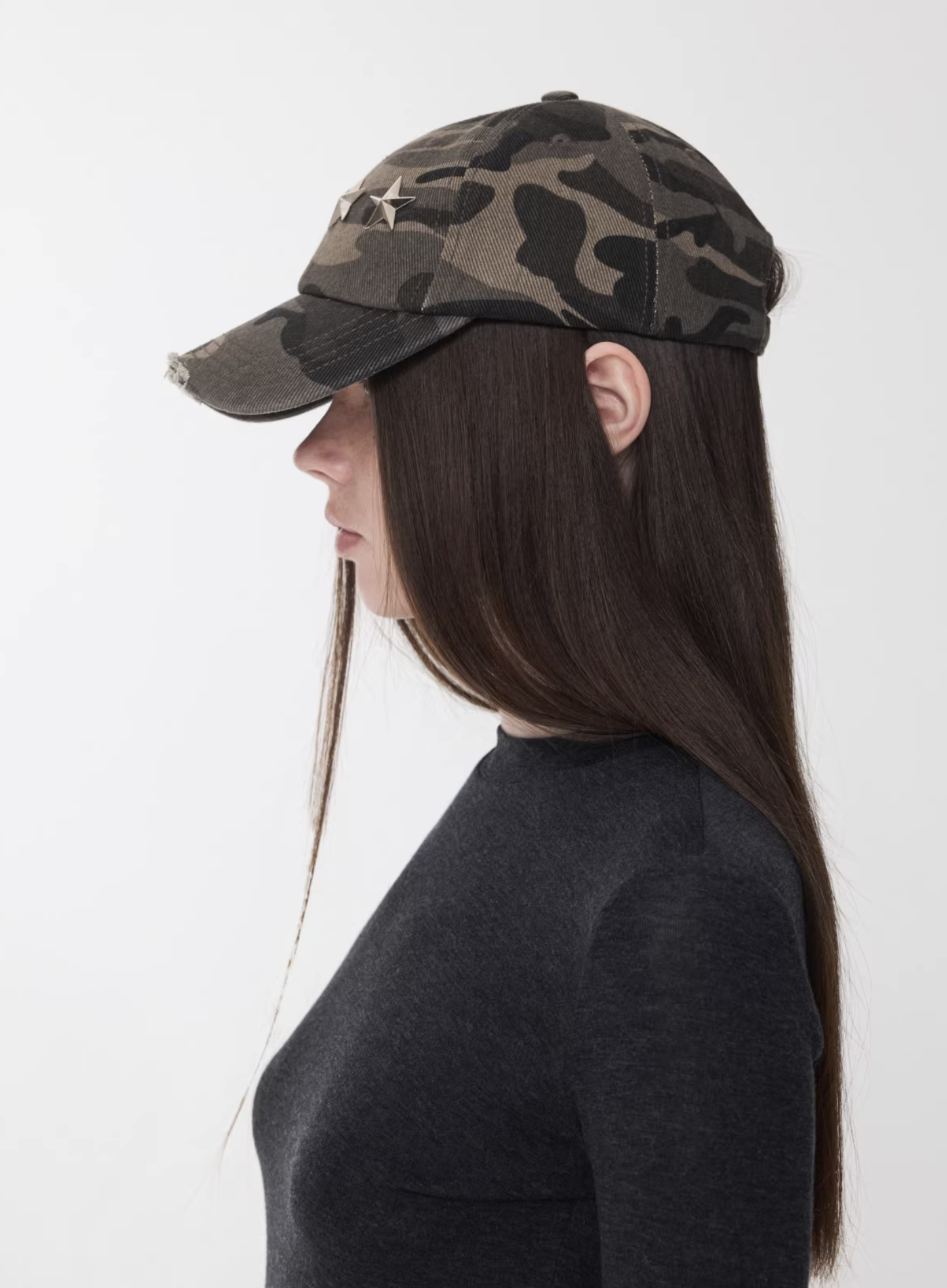 ✰ A classic baseball cap silhouette reimagined with a modern, street-inspired twist. The structured rounded crown and extended curved brim enhance the head-to-shoulder ratio, while the deeper fit provides a sleek, flattering shape. Crafted from customized camouflage fabric, the cap undergoes multiple heavy-wash processes to achieve a naturally worn-in, vintage look with subtle fading and texture.