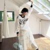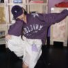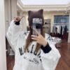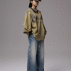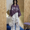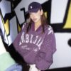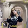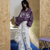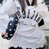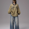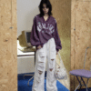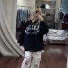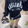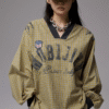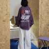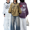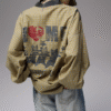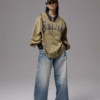 Oversized vintage-inspired V-neck long-sleeve top featuring distressed graphic prints, relaxed streetwear fit, and versatile styling suitable for casual, urban, and layered fashion looks.