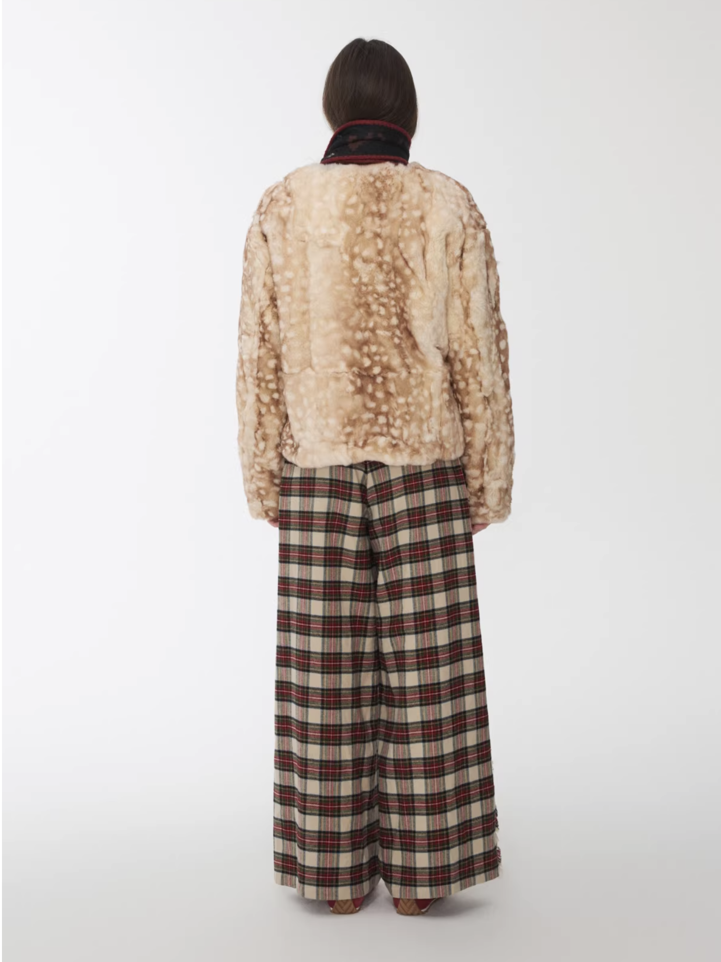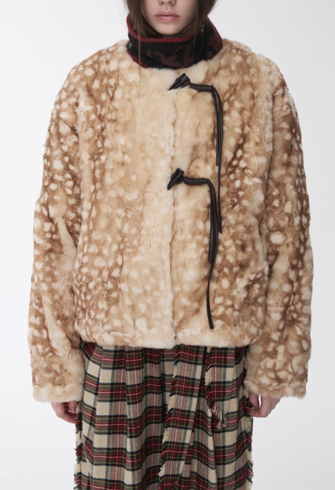 ✰ This luxurious fur jacket features a unique fawn-inspired print, combining natural elegance with contemporary design. Crafted entirely from 100% Rex rabbit fur, it offers an ultra-soft, plush texture with exceptional warmth and comfort. The cropped silhouette, relaxed shoulders, and clean tailoring create a flattering fit that exudes sophistication while maintaining a cozy feel. Perfect for both casual layering and statement winter styling, this piece embodies timeless refinement and modern luxury.