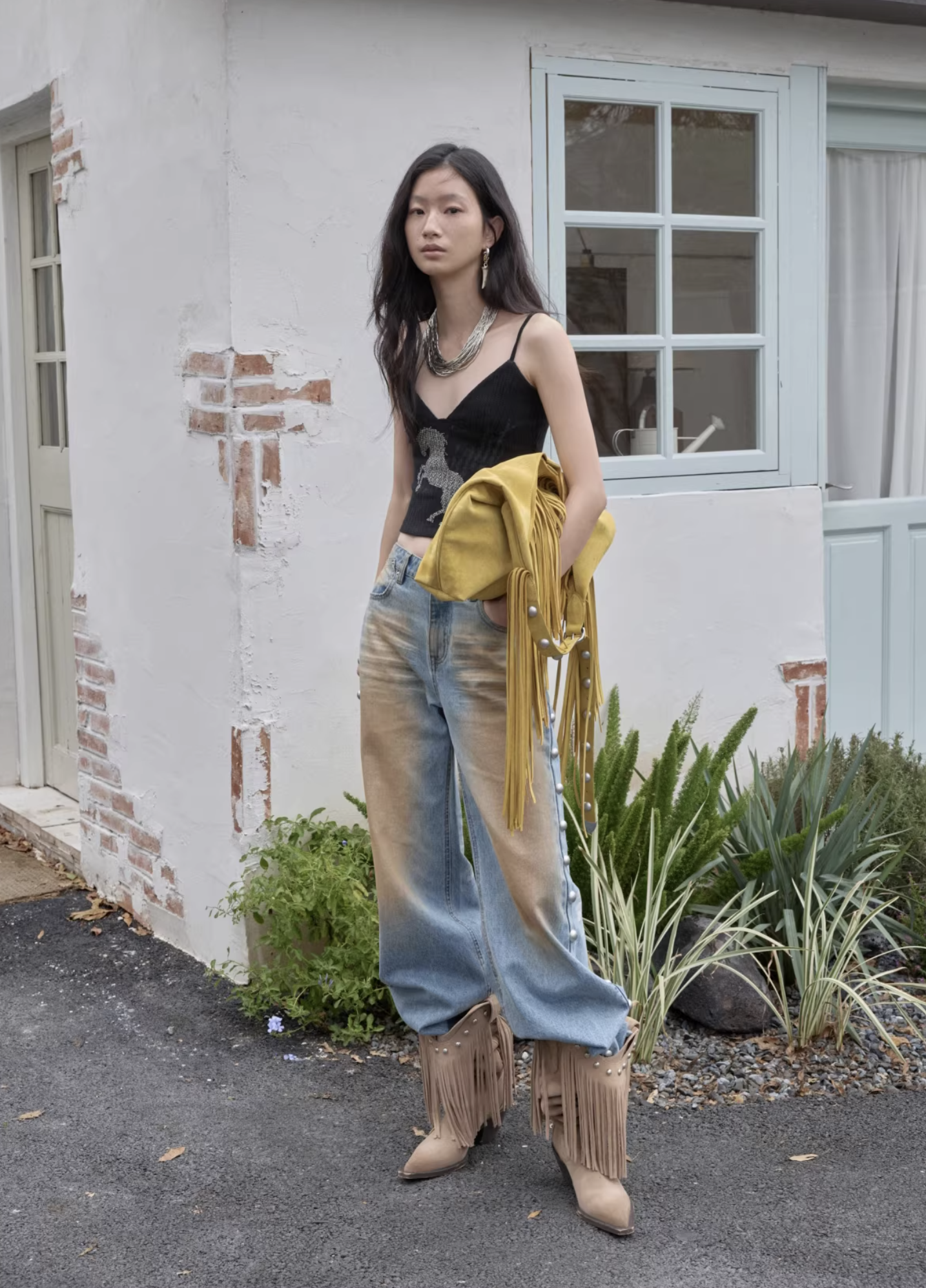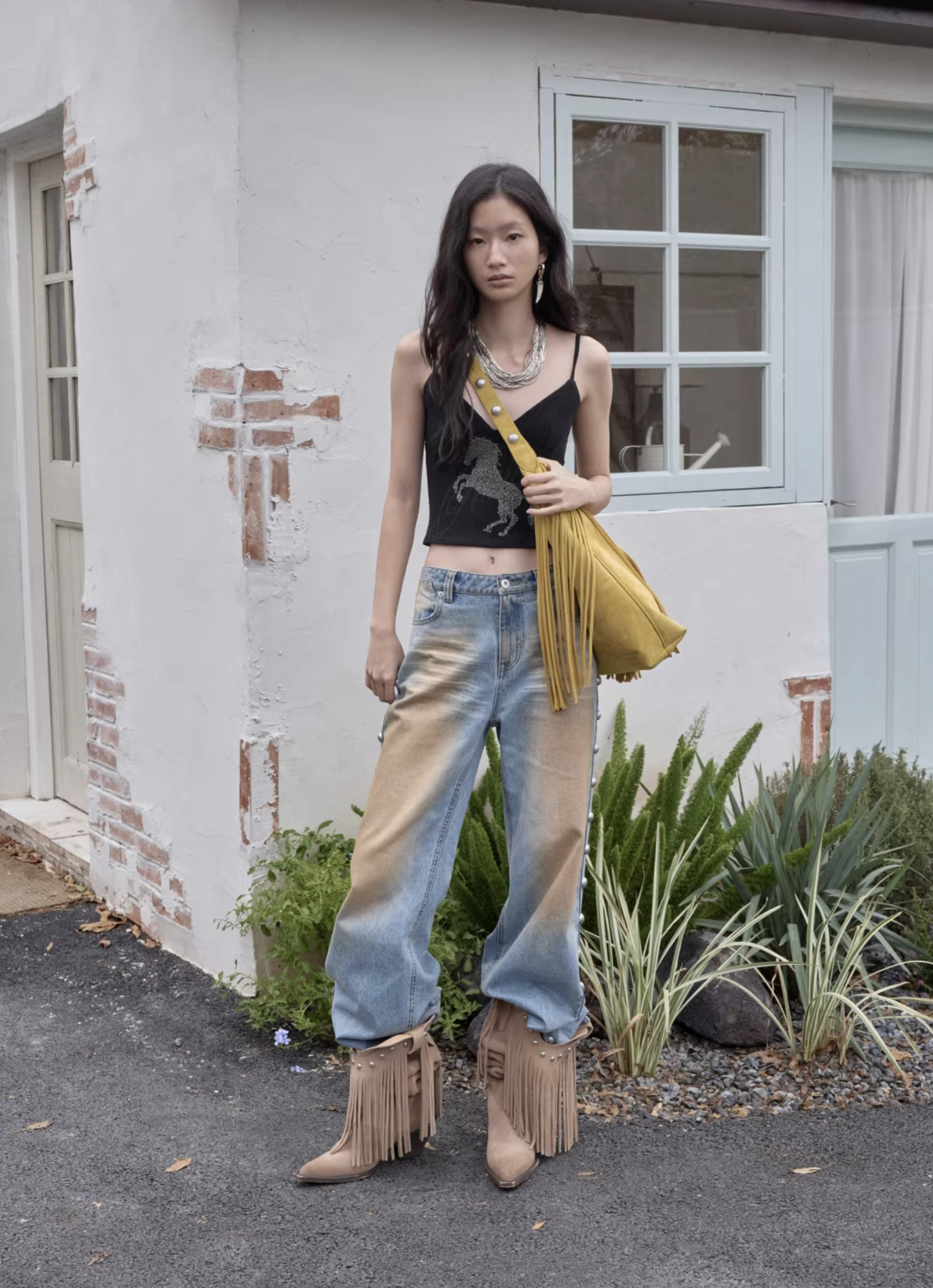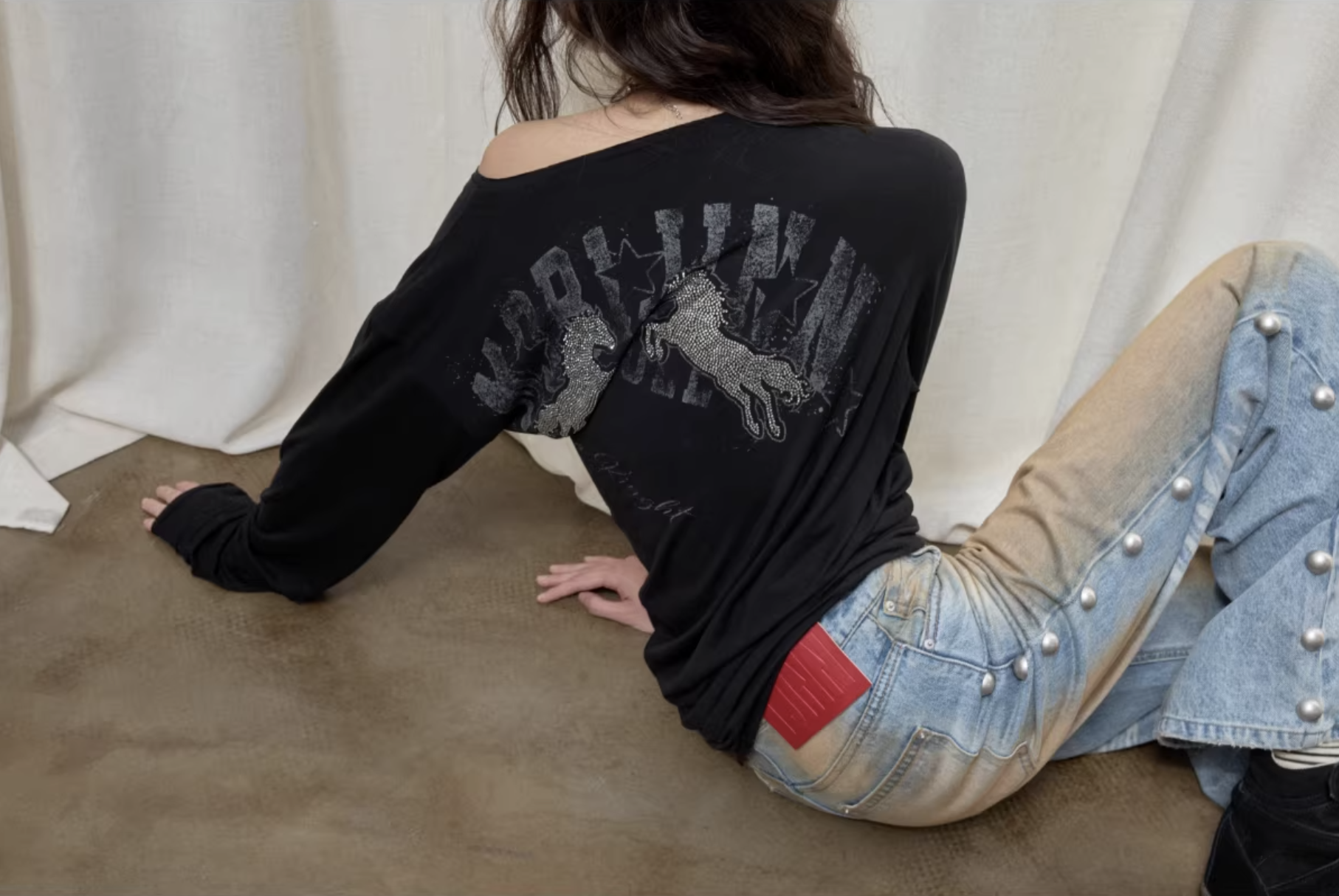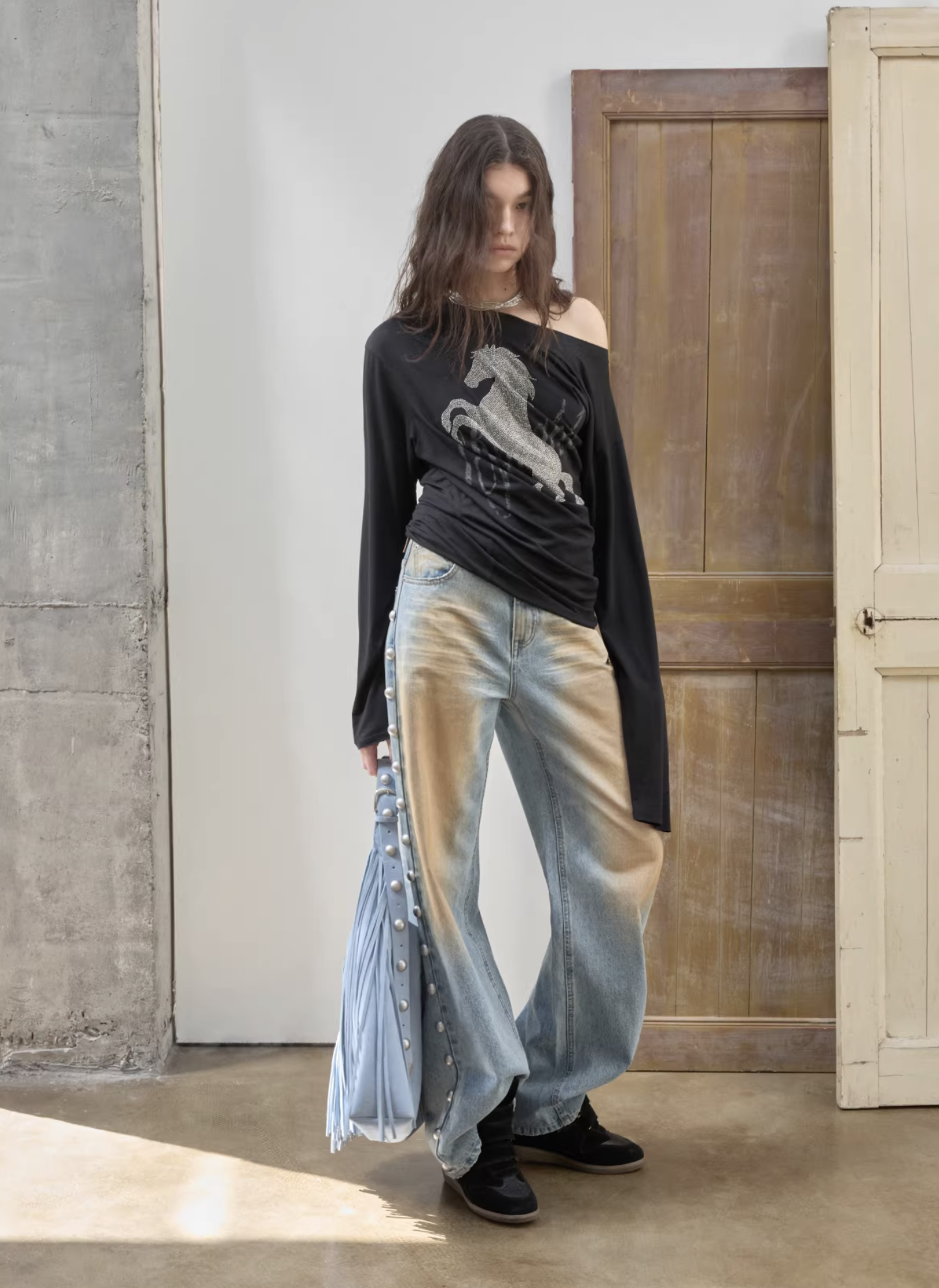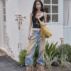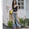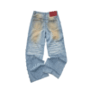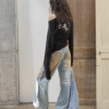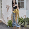 ✰ These statement jeans feature a vintage-inspired blue denim base with a distinctive sun-faded wash across the thighs, creating a worn-in, lived-through look. Designed with a relaxed flare leg, the silhouette elongates the frame while keeping a laid-back edge. Metal snap buttons run along the outer side seams, adding a subtle Western and utility influence. Finished with a mid-rise waist and classic five-pocket construction, this pair blends retro character with modern attitude—perfect for effortless, standout styling.