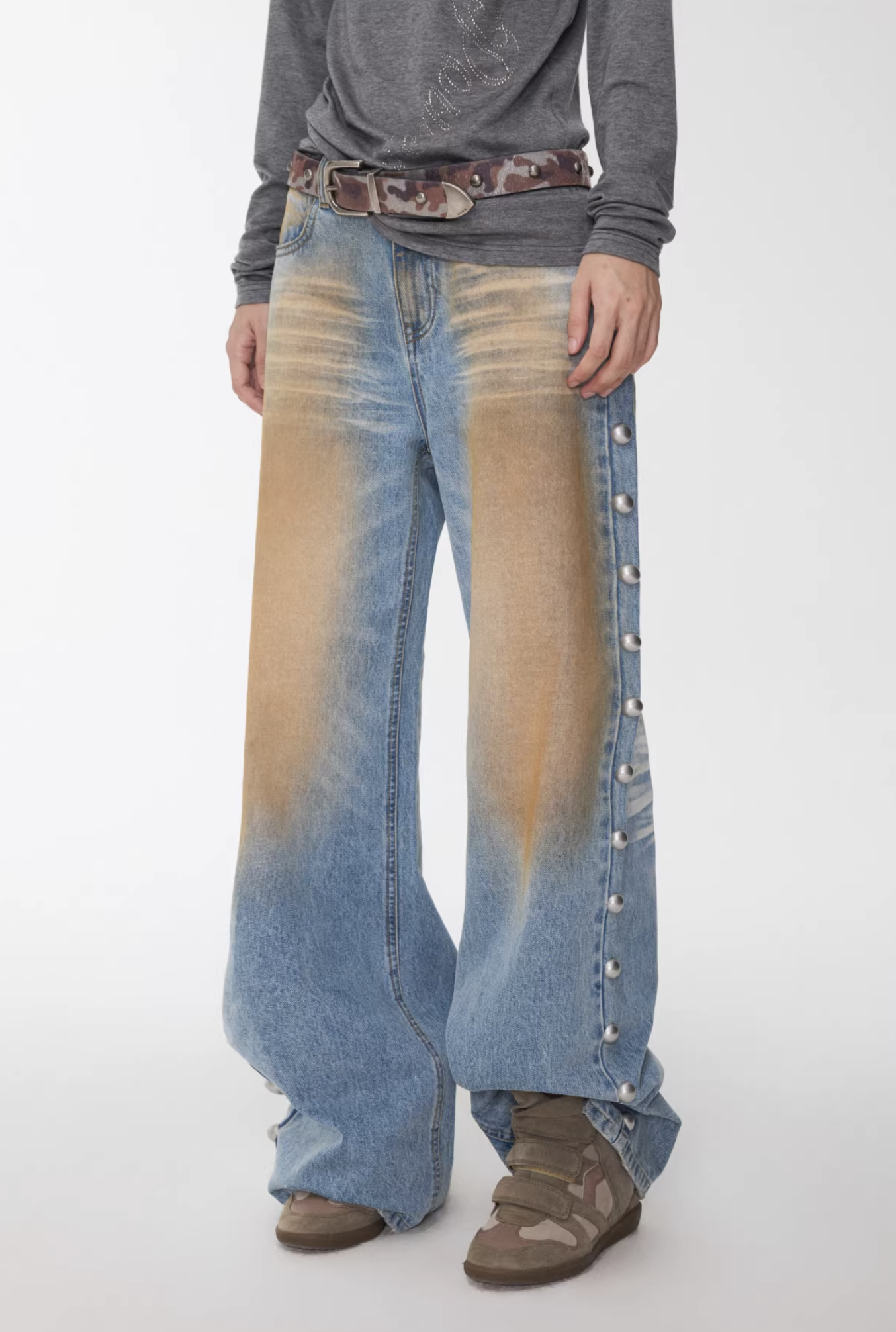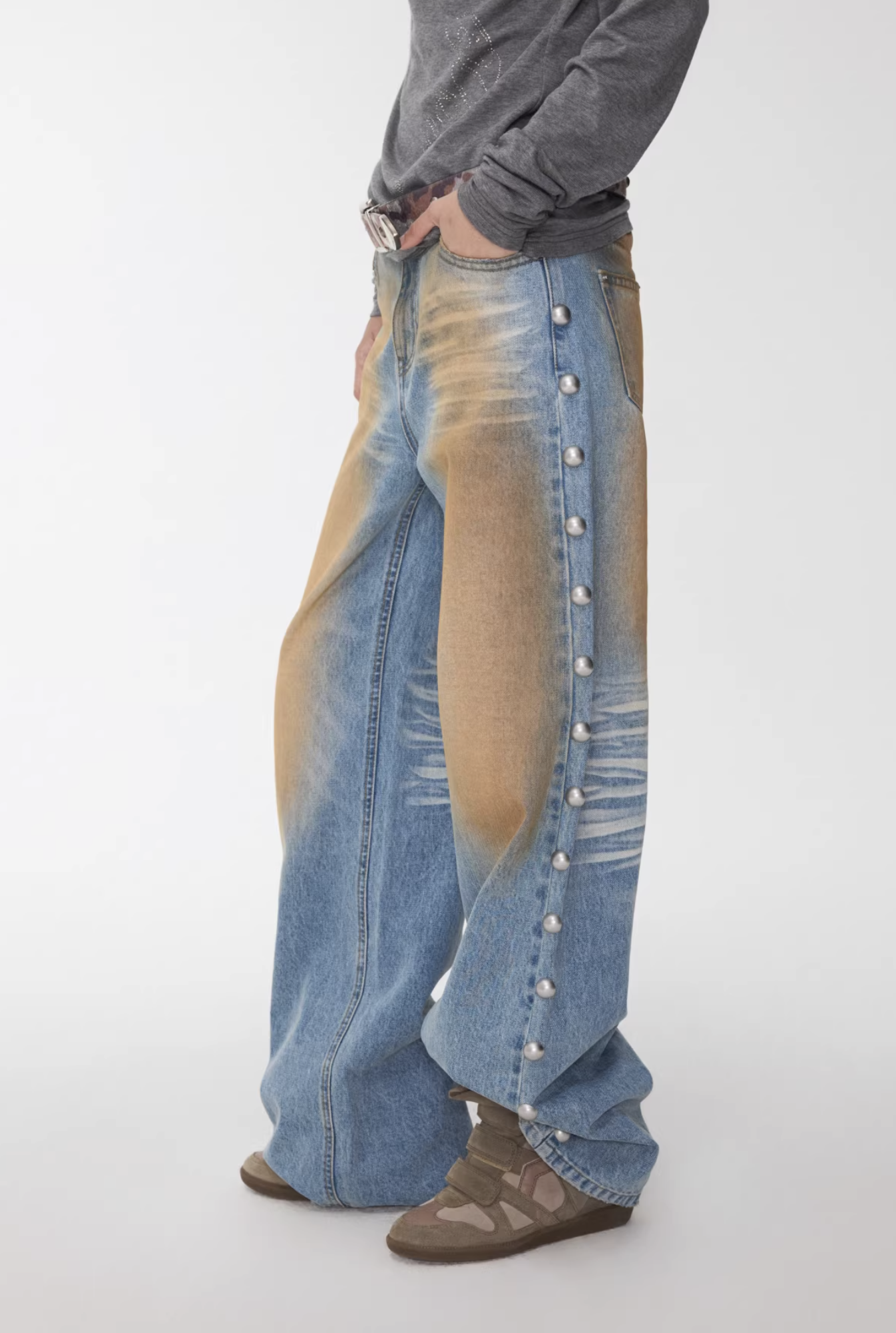 IN STOCK ♱ BRONZE HORIZON WASH BUTTON-SIDE JEANS ♱