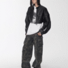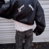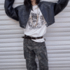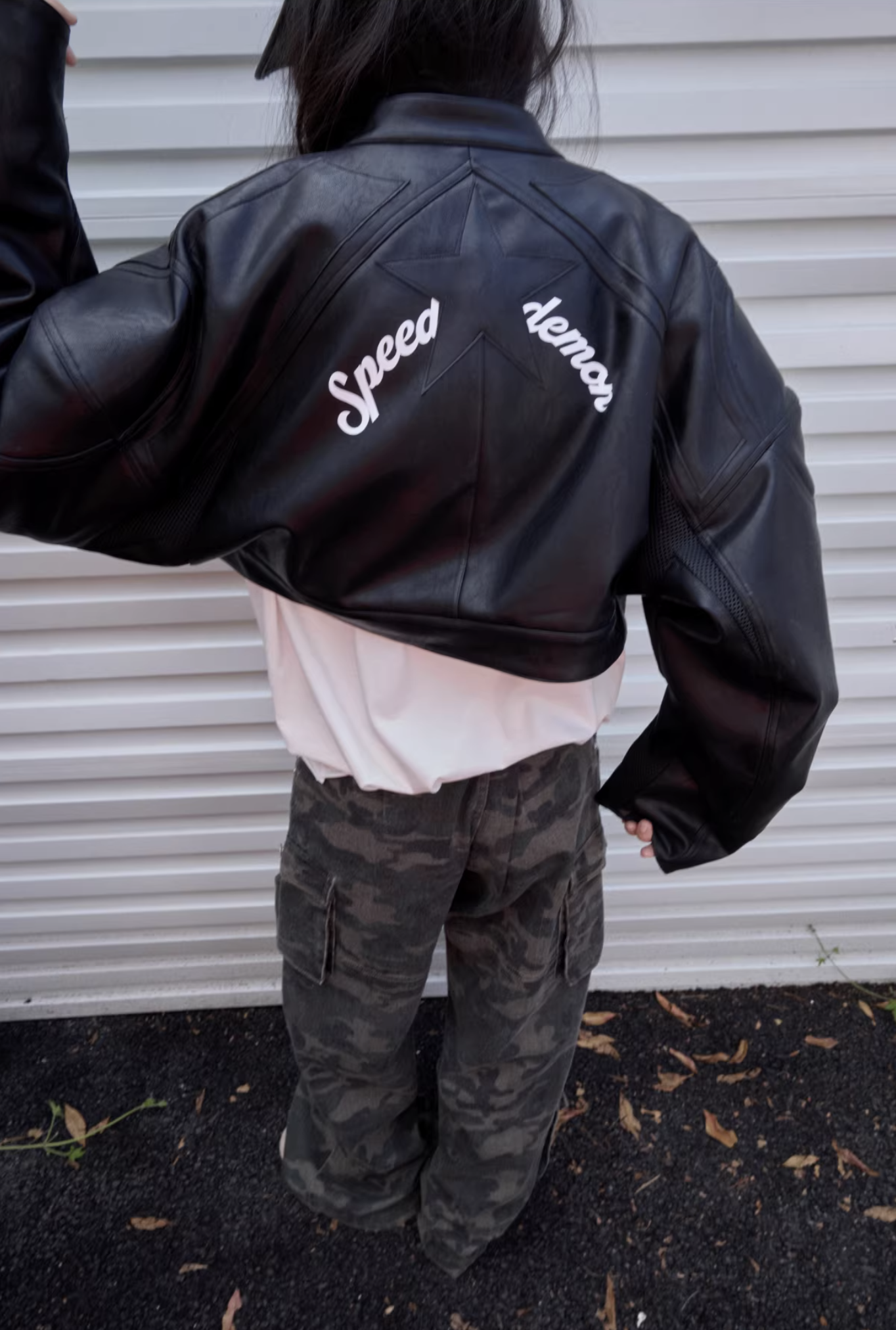 IN STOCK ♱ LETTER PRINT STRUCTURED CROPPED MOTO JACKET ♱