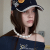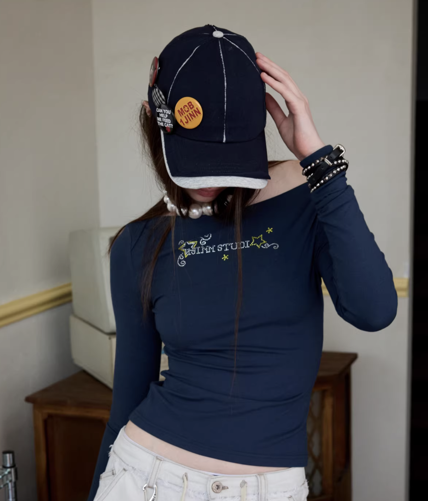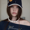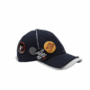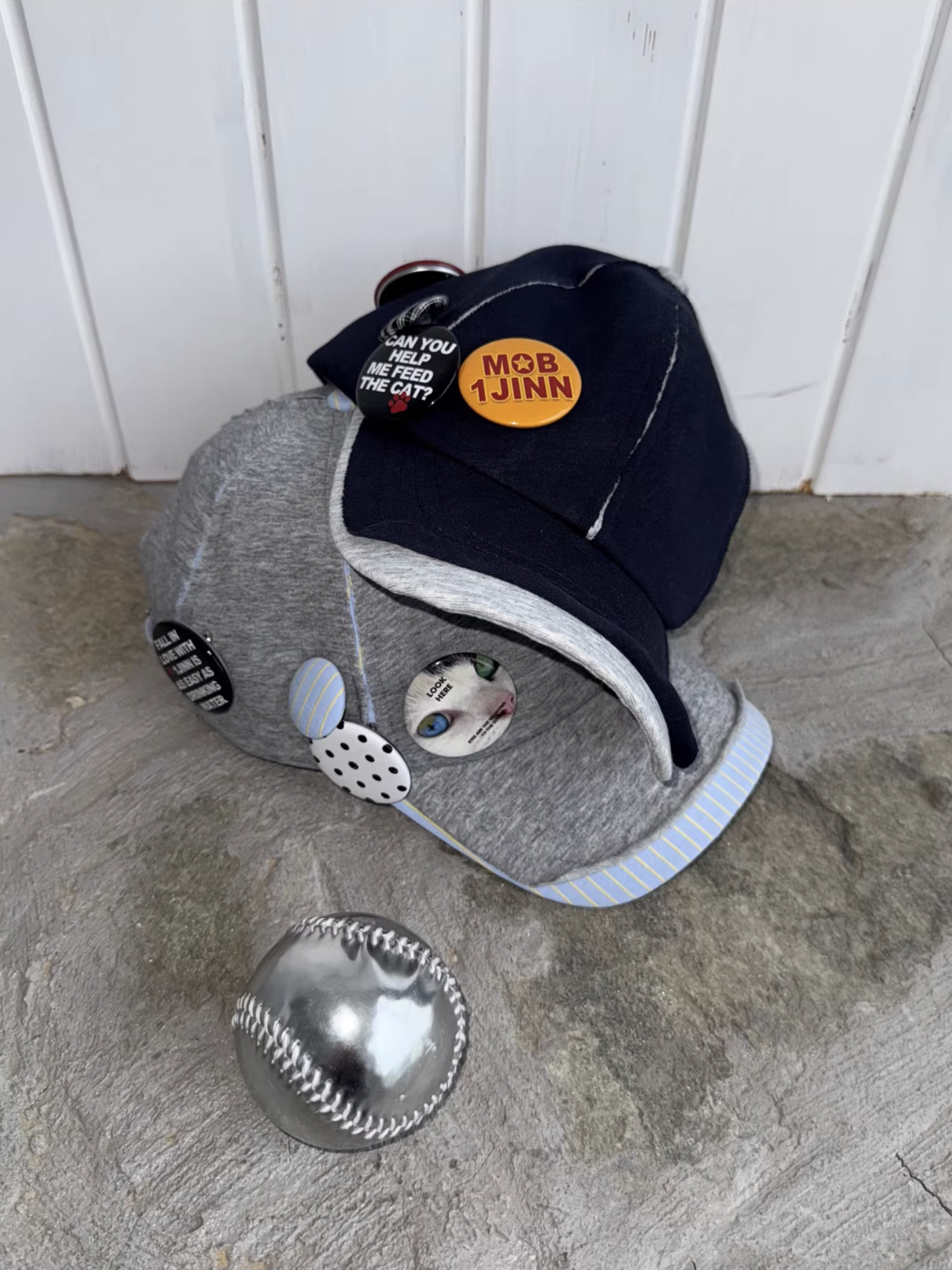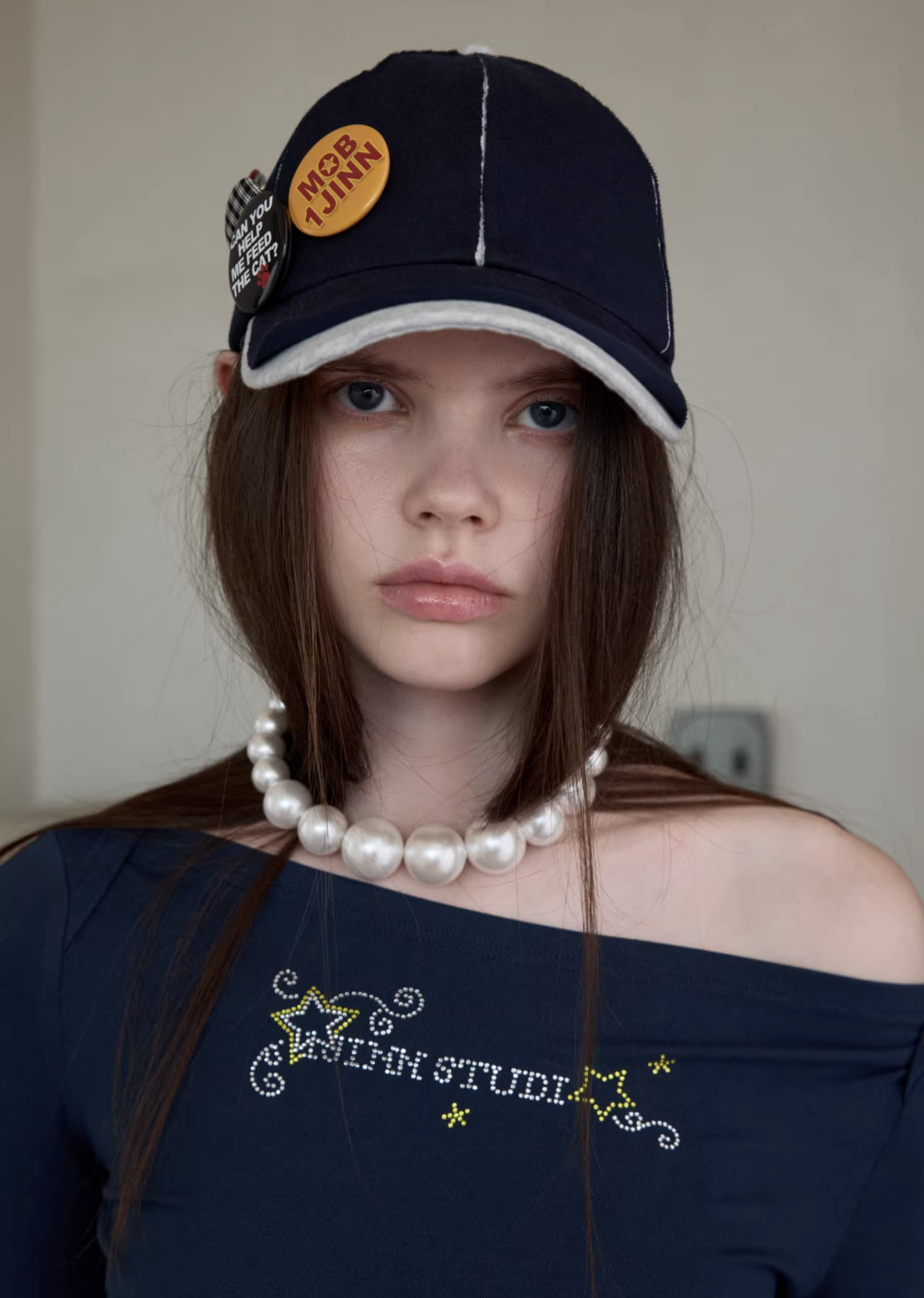 ✰ Soft navy jersey cap with contrast light-blue stitching and striped brim detail. Finished with playful removable pin badges for easy customization and a subtle statement look. Lightweight construction with a smooth inner band for comfort, and durable panel stitching to keep its shape. Adjustable fit at the back—clean, casual, and designed to add personality from every angle.