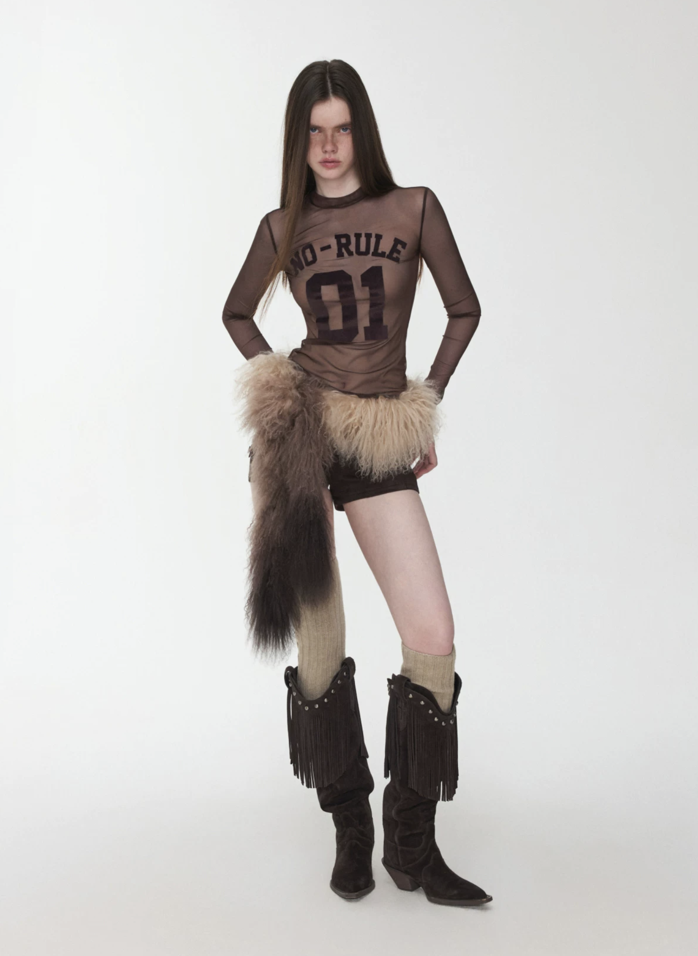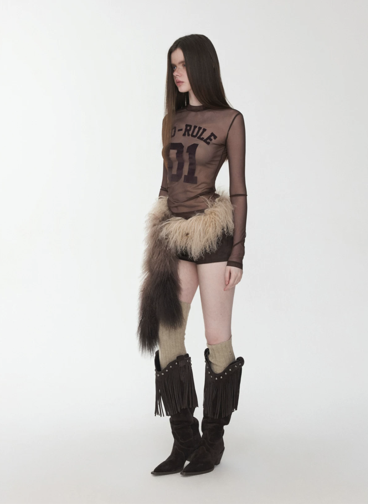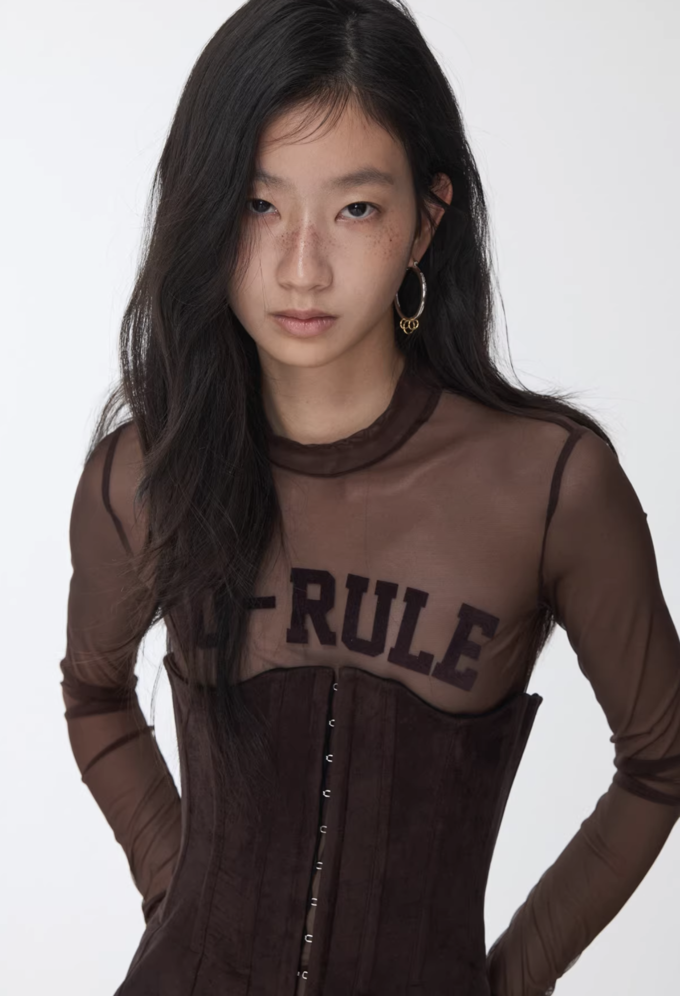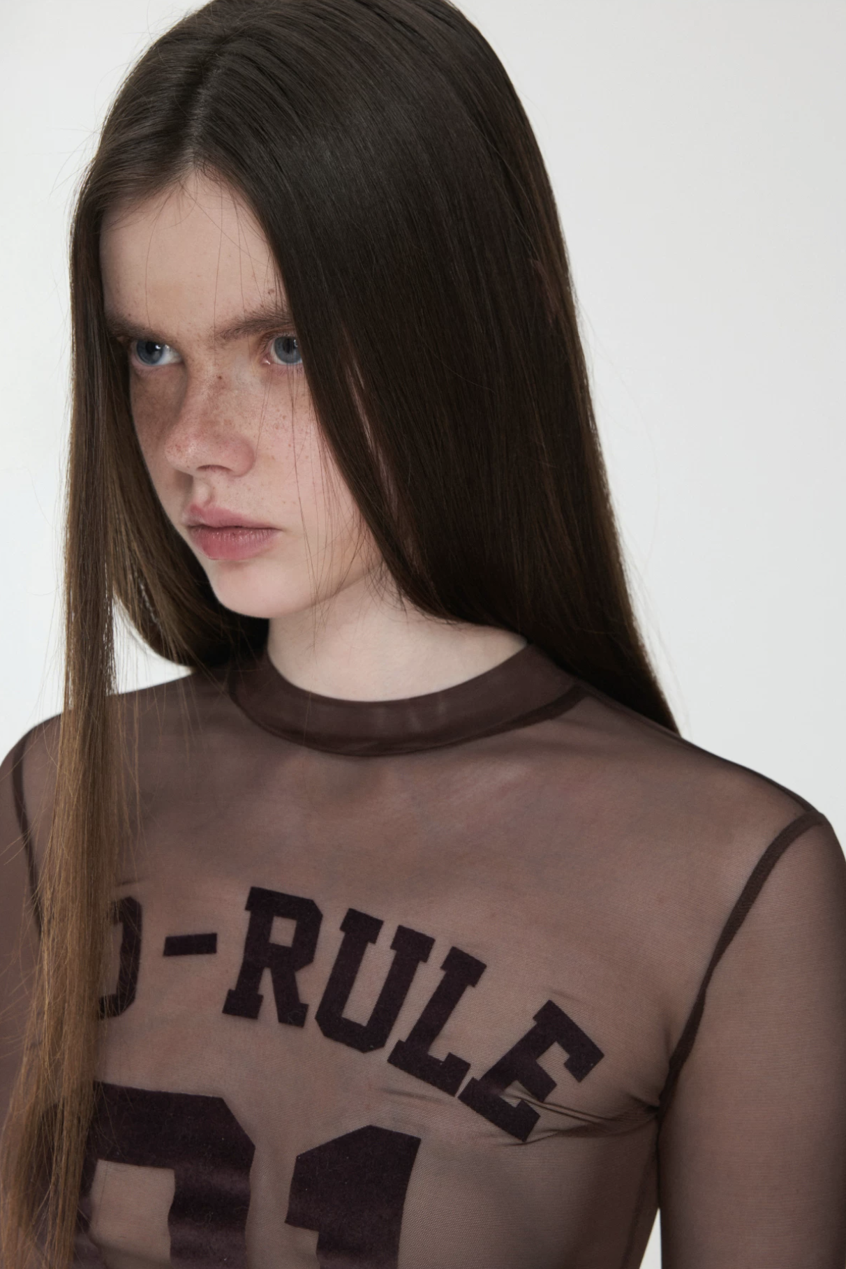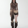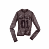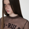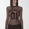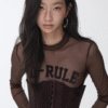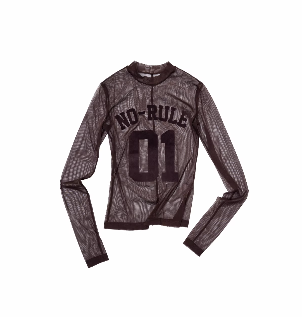A bold sheer long sleeve with varsity-inspired graphics, designed to blur the line between sporty and edgy—lightweight, daring, and made to layer or stand alone.