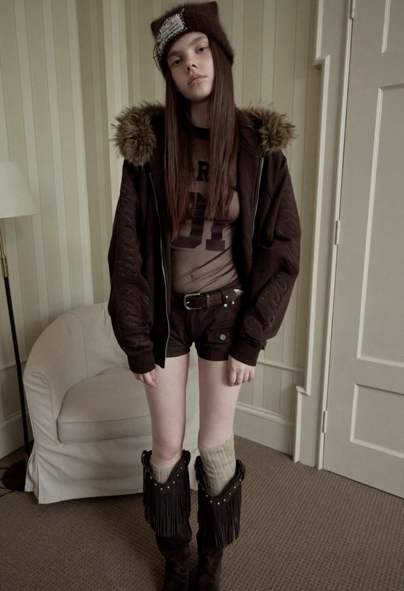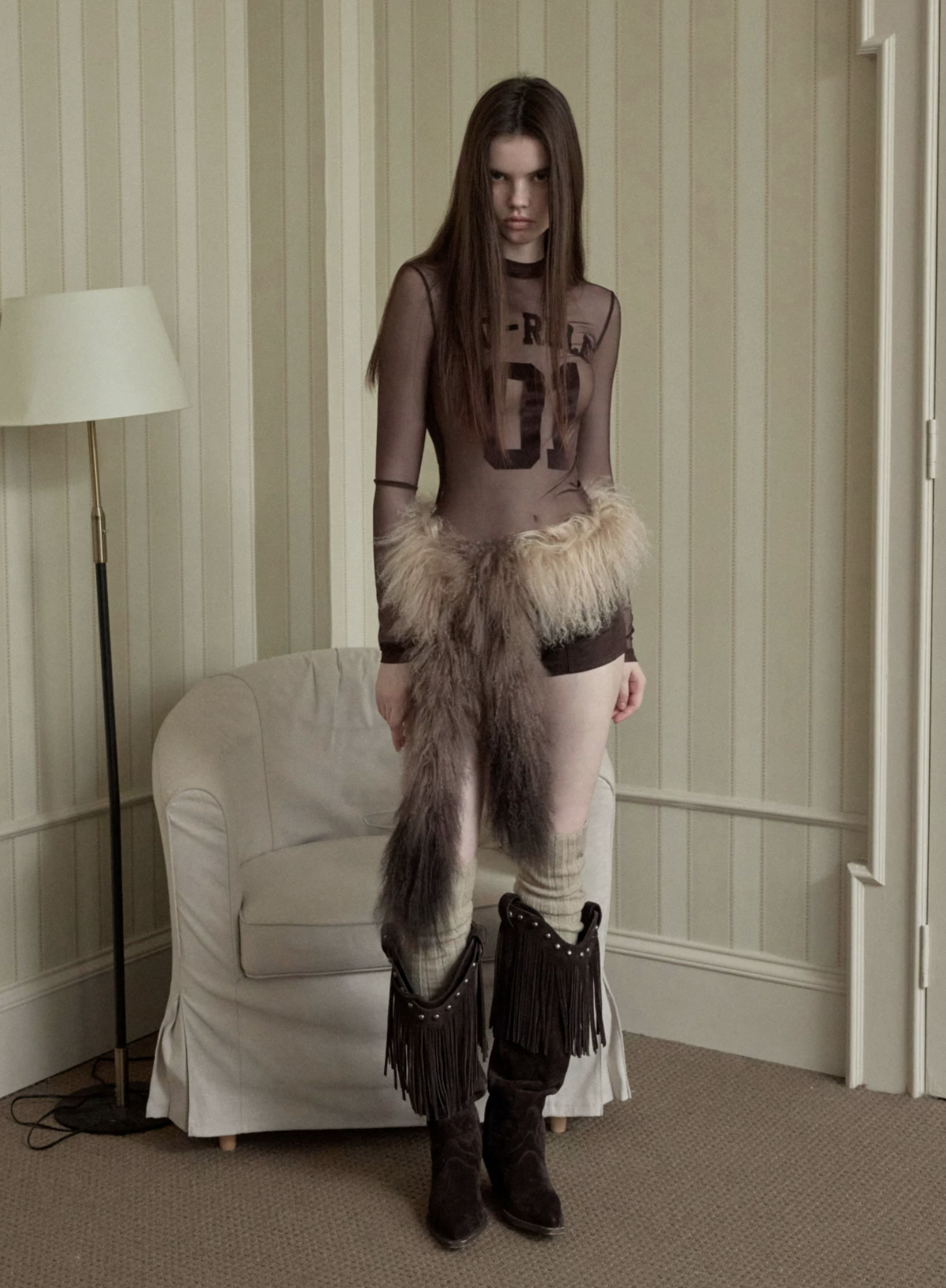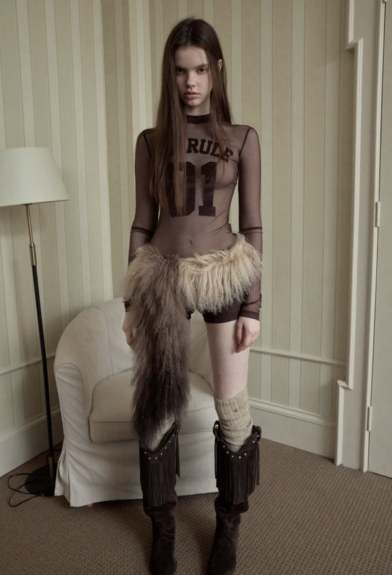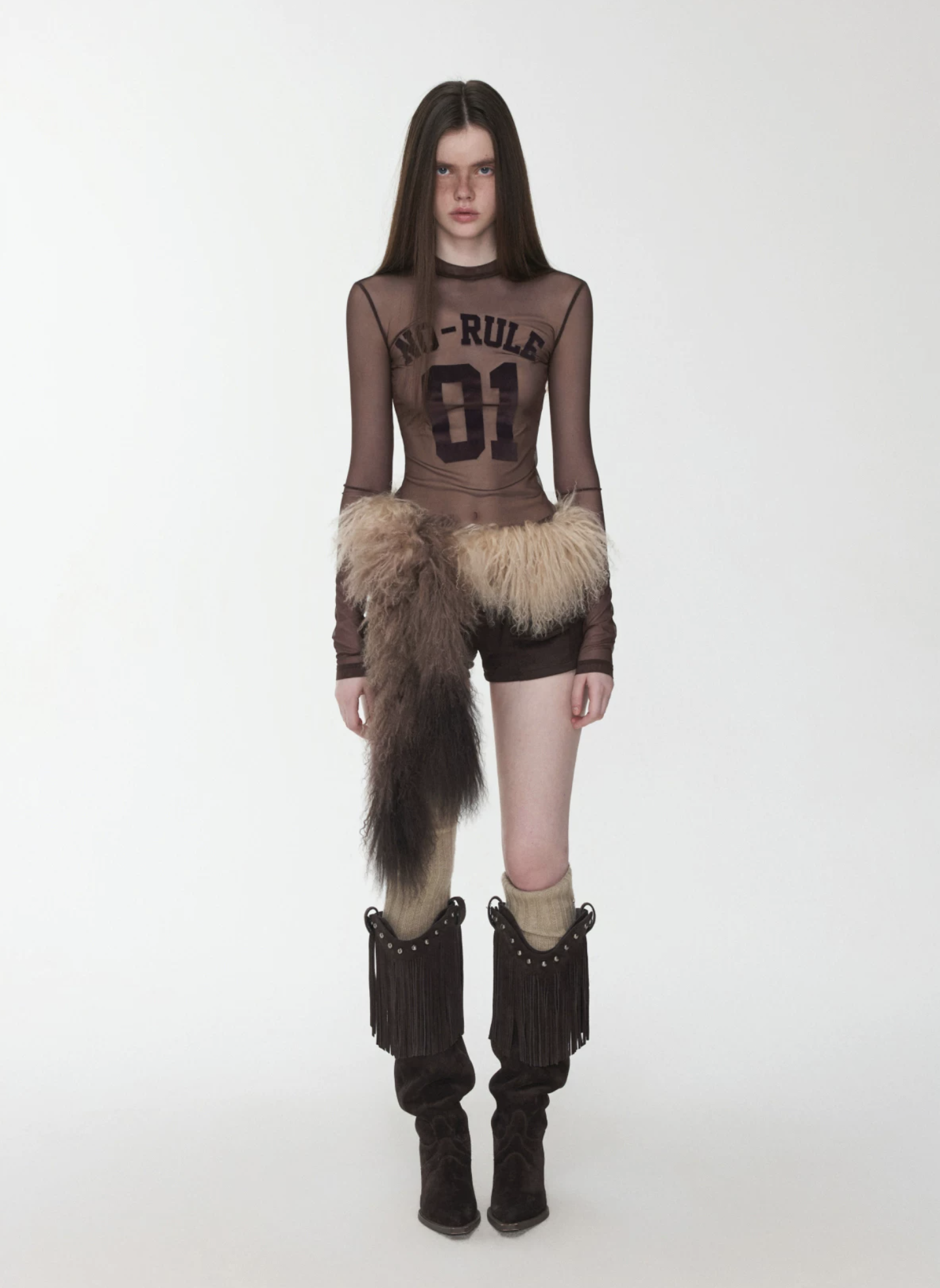 A bold sheer long sleeve with varsity-inspired graphics, designed to blur the line between sporty and edgy—lightweight, daring, and made to layer or stand alone.