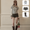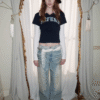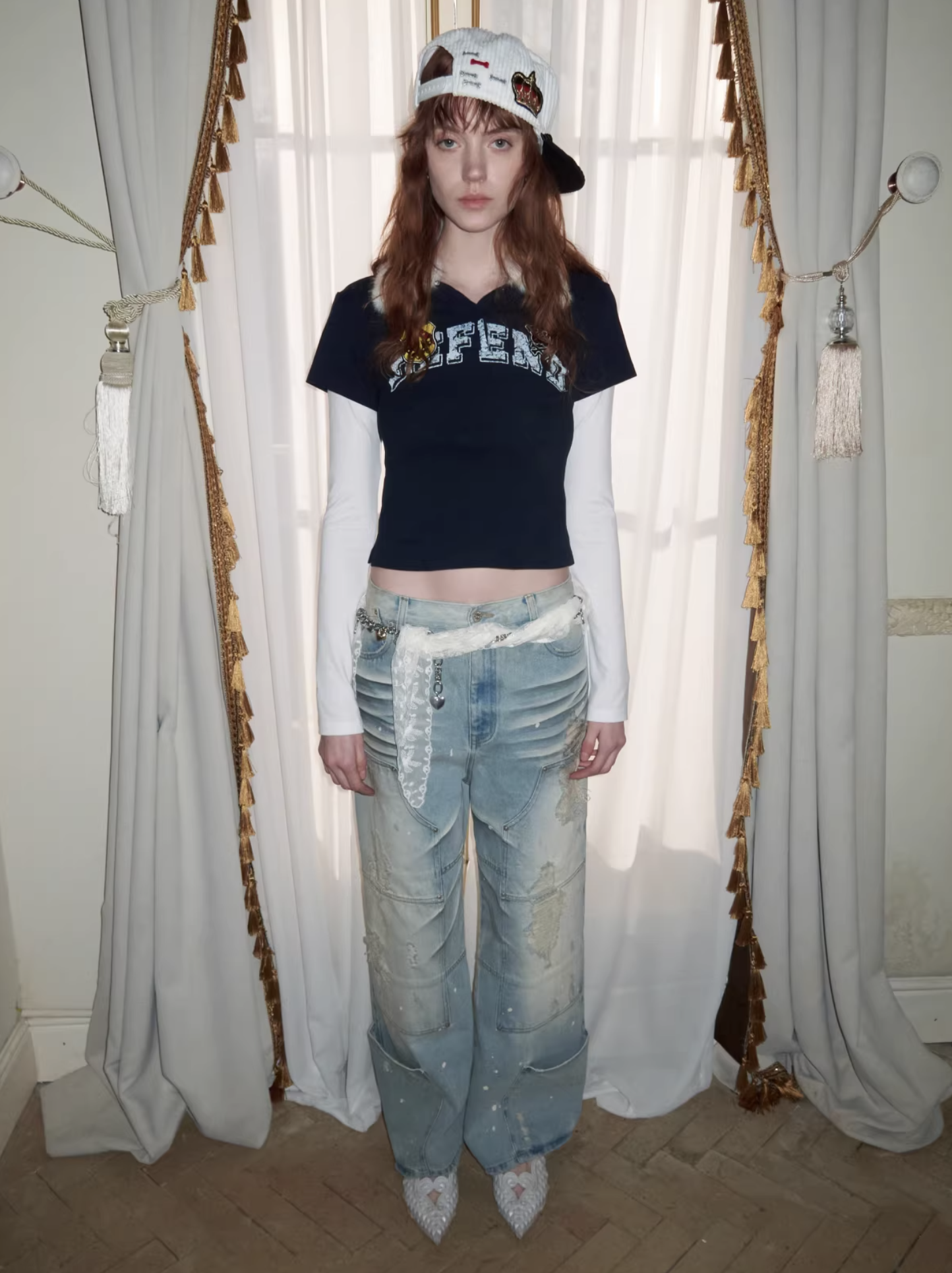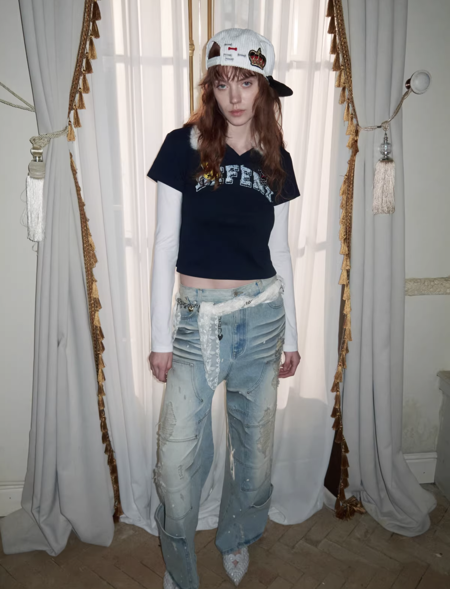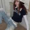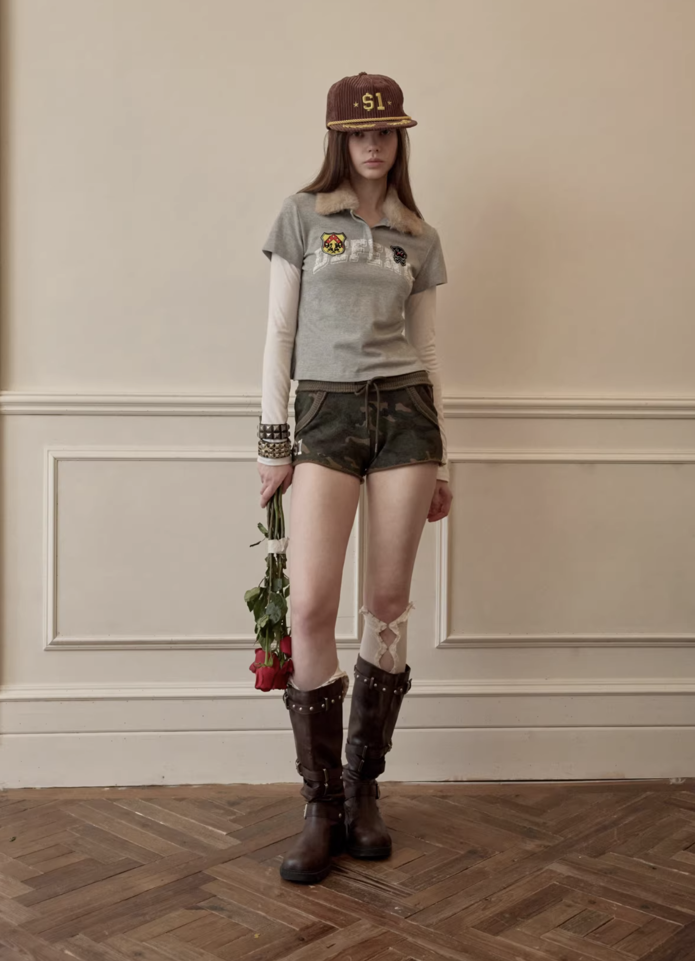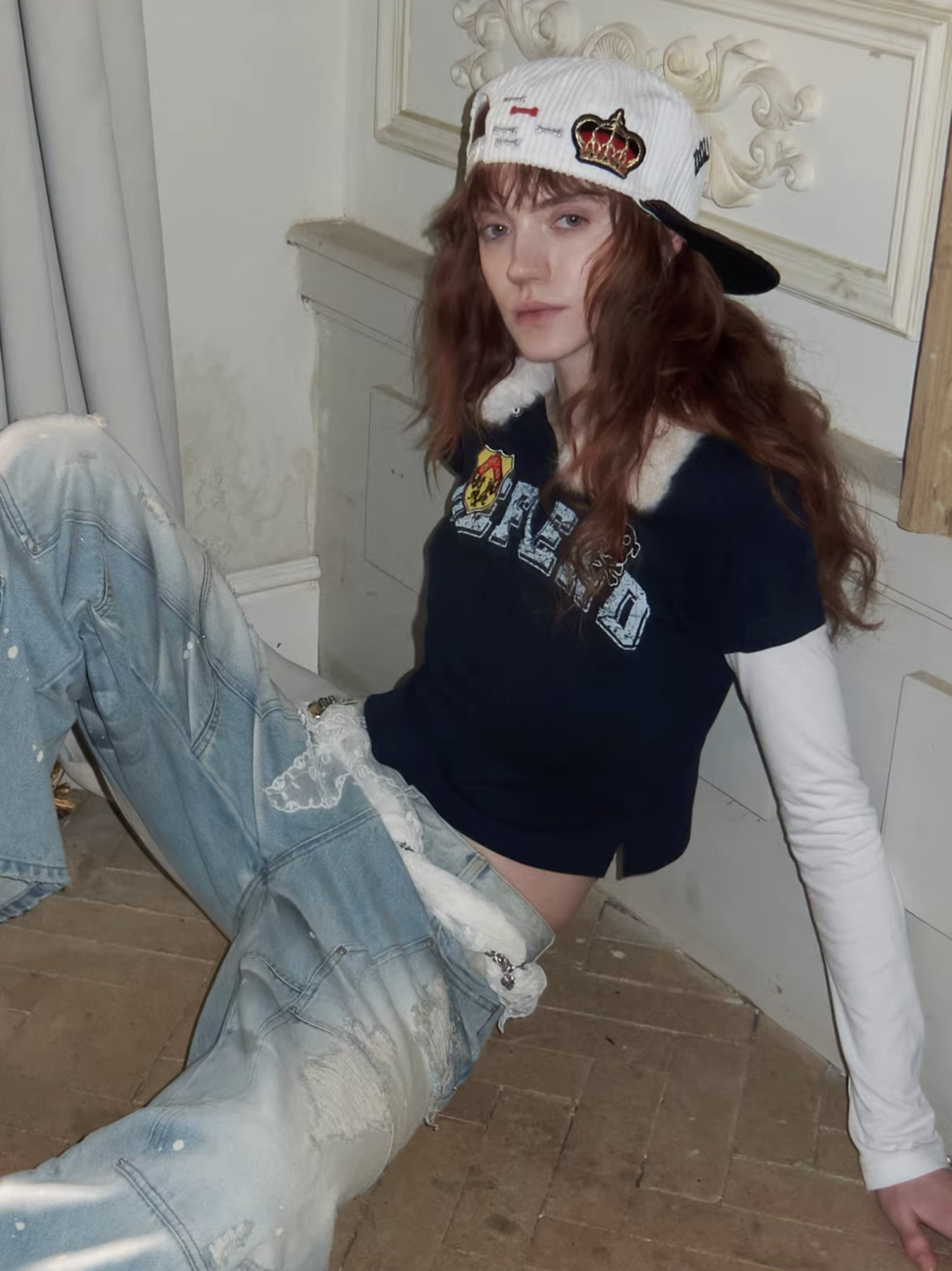✰ A playful layered top combining a short-sleeve polo with built-in long sleeves, finished with a soft faux-fur collar with a detachable and bold patch/logo details for that Y2K-meets-preppy edge. Crafted from textured cotton piqué fabric, the material offers a breathable and comfortable feel while maintaining a structured appearance. The natural texture enhances both durability and everyday wearability. Style it with cargos or mini skirts for a fun contrast, or pair with denim for an effortless everyday look.