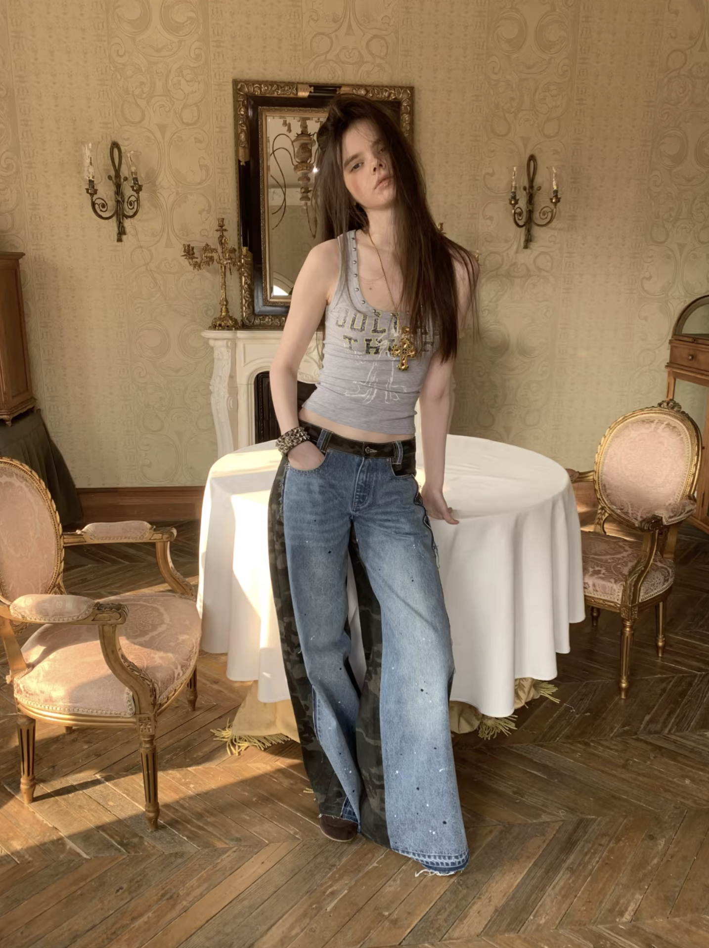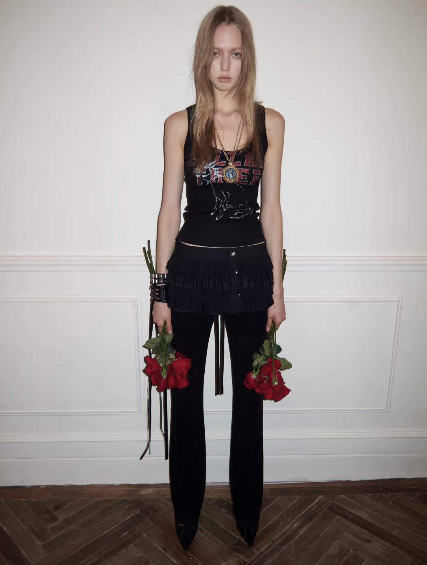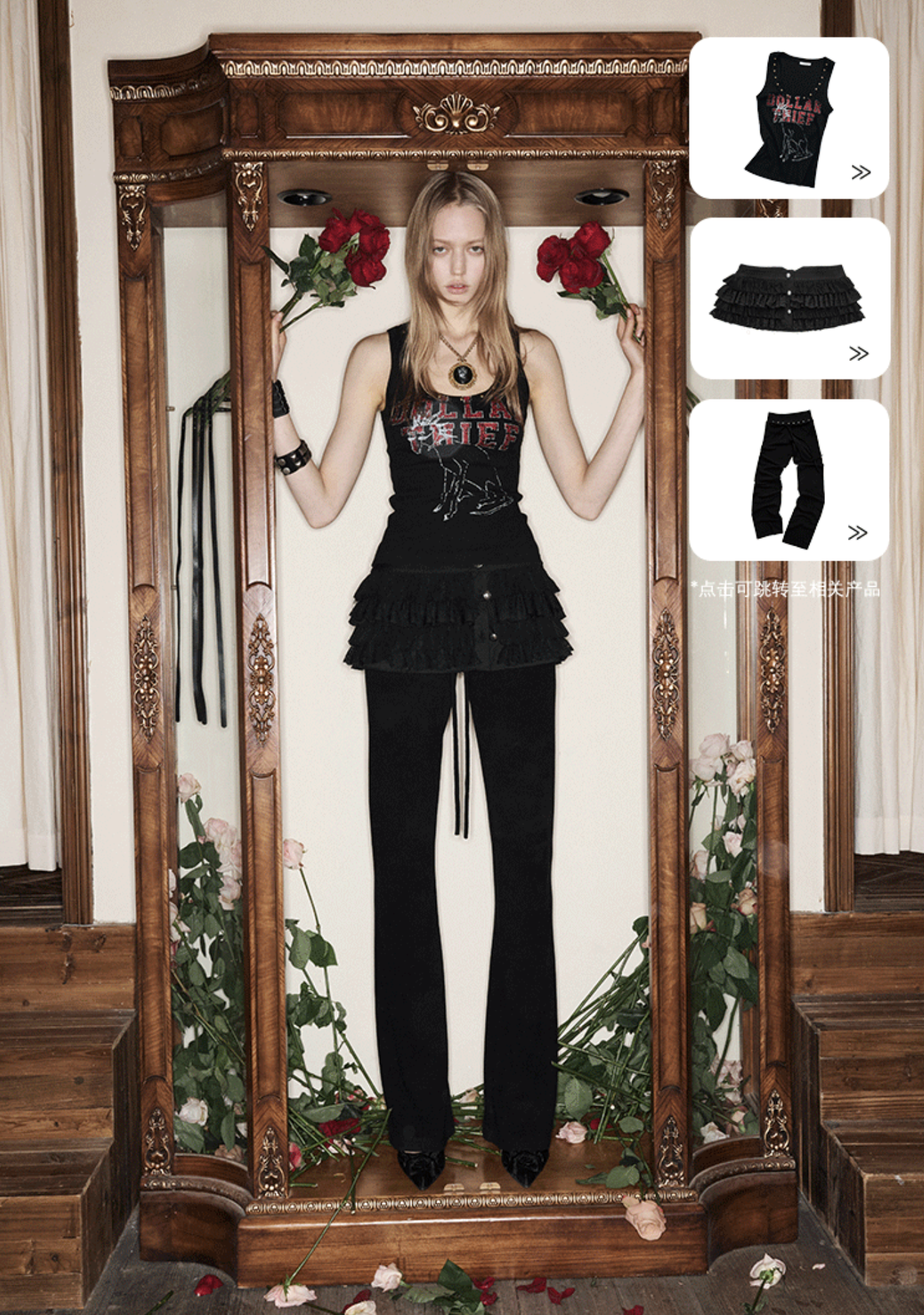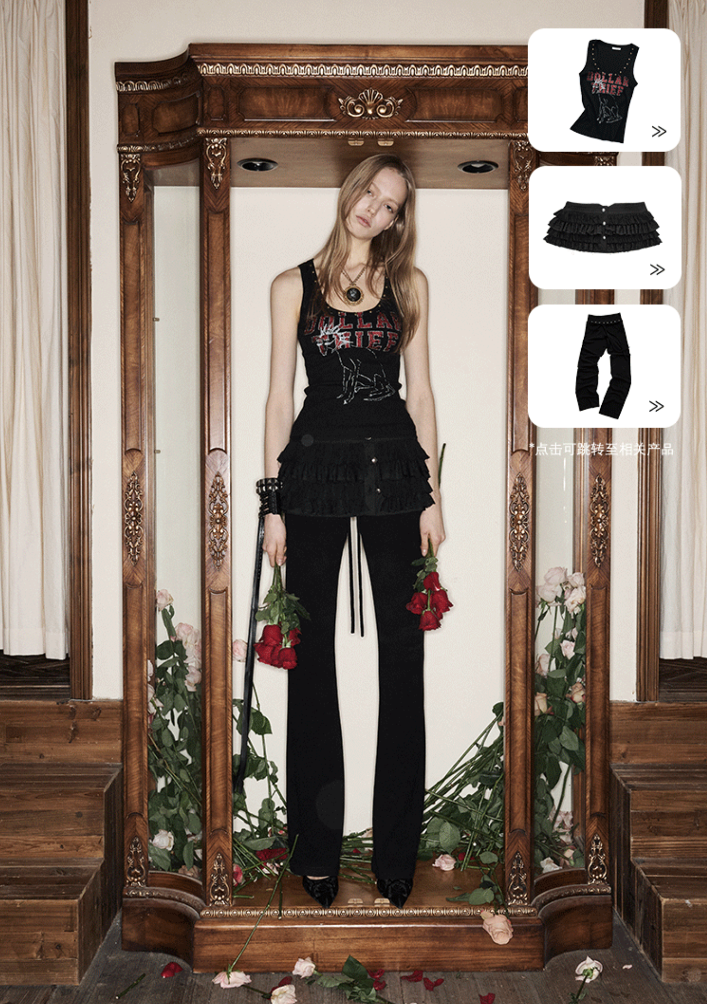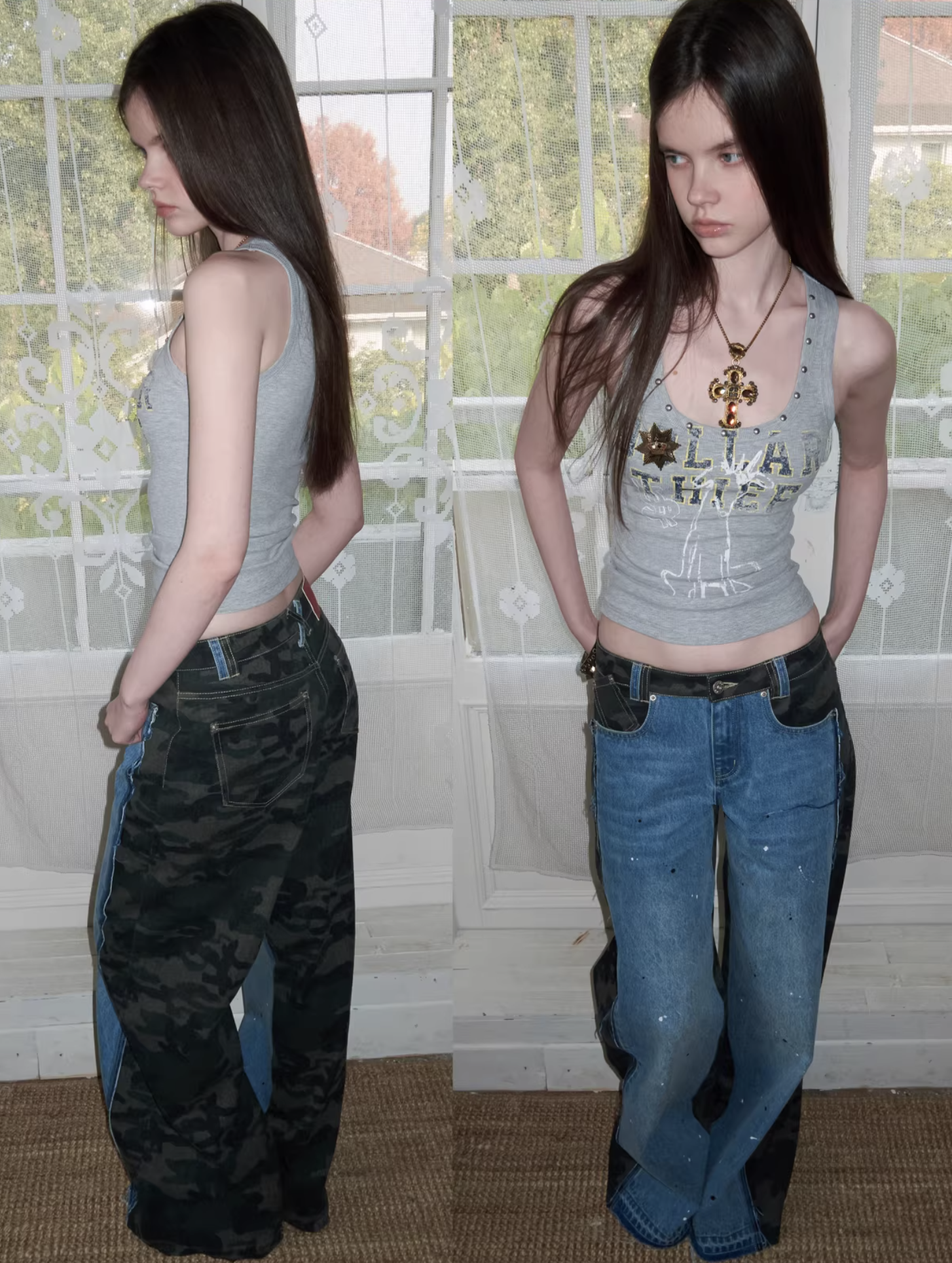 ✰ A fitted tank with bold “Dollar Thief” graphic and studded neckline for that effortless Y2K grunge attitude. Made from stretch ribbed knit fabric, the material offers a soft, comfortable feel while contouring naturally to the body. The breathable cotton-blend fabric ensures ease of movement and everyday wearability.