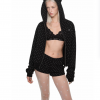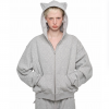 This hoodie features an adorable 3D cat ear design, peppered with recurring playful cat paw print. The custom-made silver-tone cat paw zipper pull adds a cute and stylish accent to the design. Made from a high-quality cotton and polyester blend for a soft, comfortable feel, it is perfect for everyday wear.