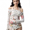 ✰ This cover up exudes a vacation vibe with its floral print and slight sheerness. It features a mid length slim-fit silhouette, suitable for both single wear and layering, effortlessly outlining the body curve. The long sleeved off the shoulder design allows for free adjustment of the shoulder sleeve shape, adding a touch of cool and spicy charm.
