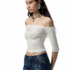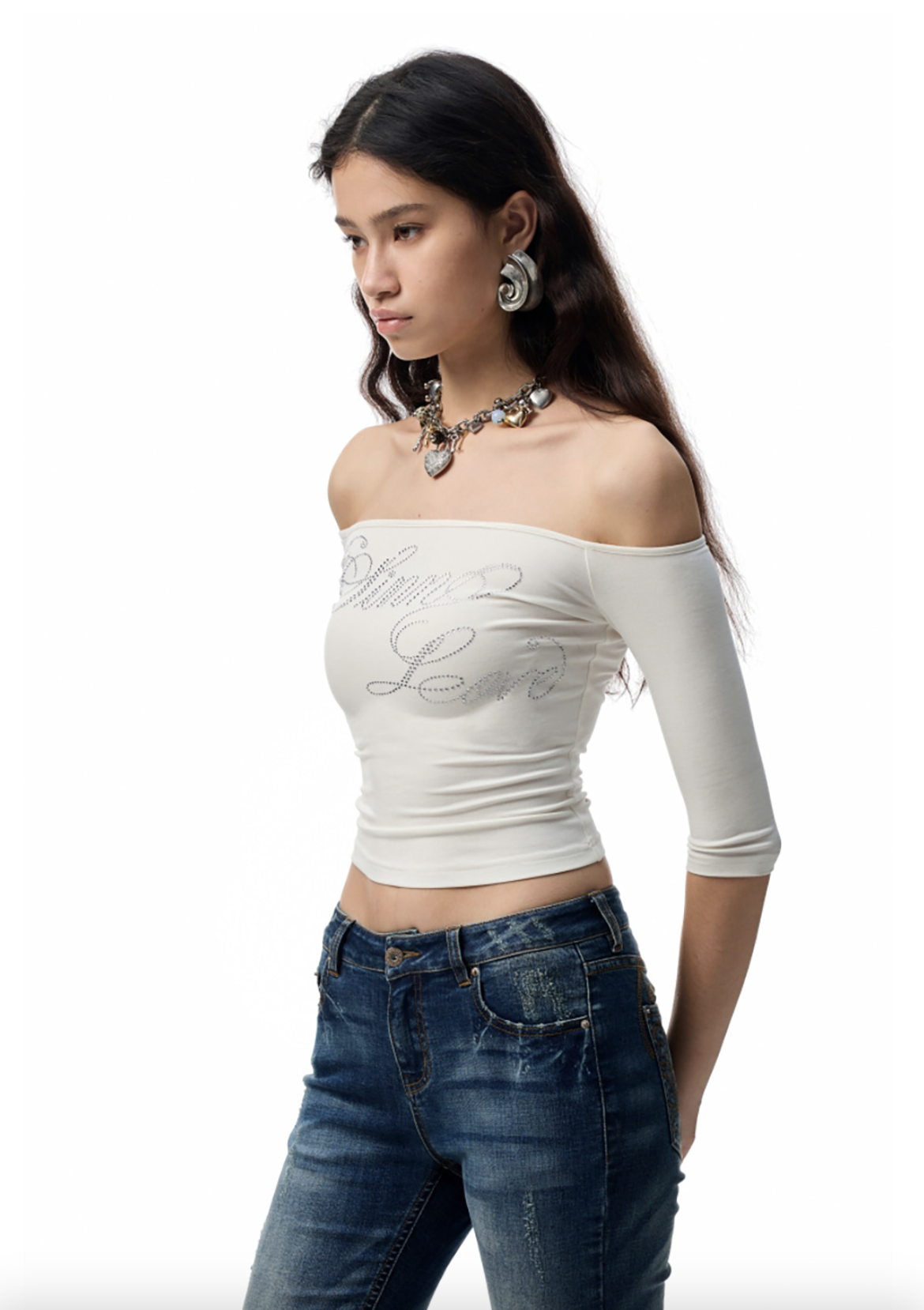 ✰ One-Shoulder Rhinestone Acetate Slim T-shirt. Selected imported Austrian rhinestones create a visual focal point and enrich the overall visual effect. The selected acetate – modal blended knitted fabric, extracted from natural wood pulp, creates an understated and premium texture. The blended yarn endows the garment with a flowing drape, fulfilling the dual pursuit of lazy casualness and exquisite details.