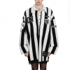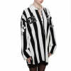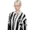 ✰ This long-sleeve polo shirt features a relaxed and sporty fit with a classic black-and-white striped design. The oversized silhouette enhances comfort while offering a slimming effect. The contrasting placket adds a subtle touch of sophistication, while vintage-style embroidered patches provide a retro aesthetic. Crafted from soft, skin-friendly cotton fabric with a hint of spandex.