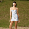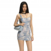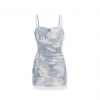 ✰ Bodycon Spaghetti Strap Denim Mini Dress with 3D Digital graphic pattern printed throughout with adjustable shoulder straps, featuring the “Blue Sky and White Clouds” original brand print from the exclusive series, offering a one-of-a-kind fashionable appeal.