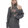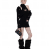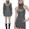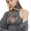 ✰ Aria Cove cable knit high neck sleeveless mini sweater dress features heart hollow-out transparent panels and a stretchy knit, It has a turtleneck and slim fit. Elevate your look with the matching cable-knit hooded cropped cardigan