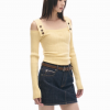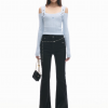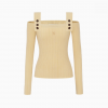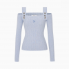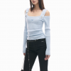 ✰ This elegant cold-shoulder ribbed-knit long-sleeve top combines wide straps and an off-shoulder design for a layered and structured look. Crafted from a premium blend