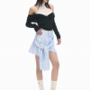 IN STOCK | BLUE HENLEY KNIT TOP – Can be worn 2 ways!