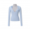 ✰ Cotton Blend Rib Henley Long Sleeve Top comes with a high-necked sleeveless knit top inside that can be worn separately.