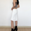 ✰ Up your style game with this capri 2-piece set. This blouse is made from a white textured material for an effortlessly chic look we are obsessing over. With a ruffle tie front for a flattering fit, we are obsessed. Team with our heavy satin midi skirt, it features a midi length with a straight, A-line fit, low waistline and lace trim.