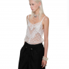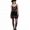 ✰ Enhance your wardrobe essentials with this lace trim silk camisole, where luxury meets versatility. This stunning black top features delicate lace detailing along the neckline, complemented by an adjustable side tie for a personalized fit. Perfect for layering under a blazer or wearing solo for an evening out, this camisole is a staple for any fashion-forward collection.