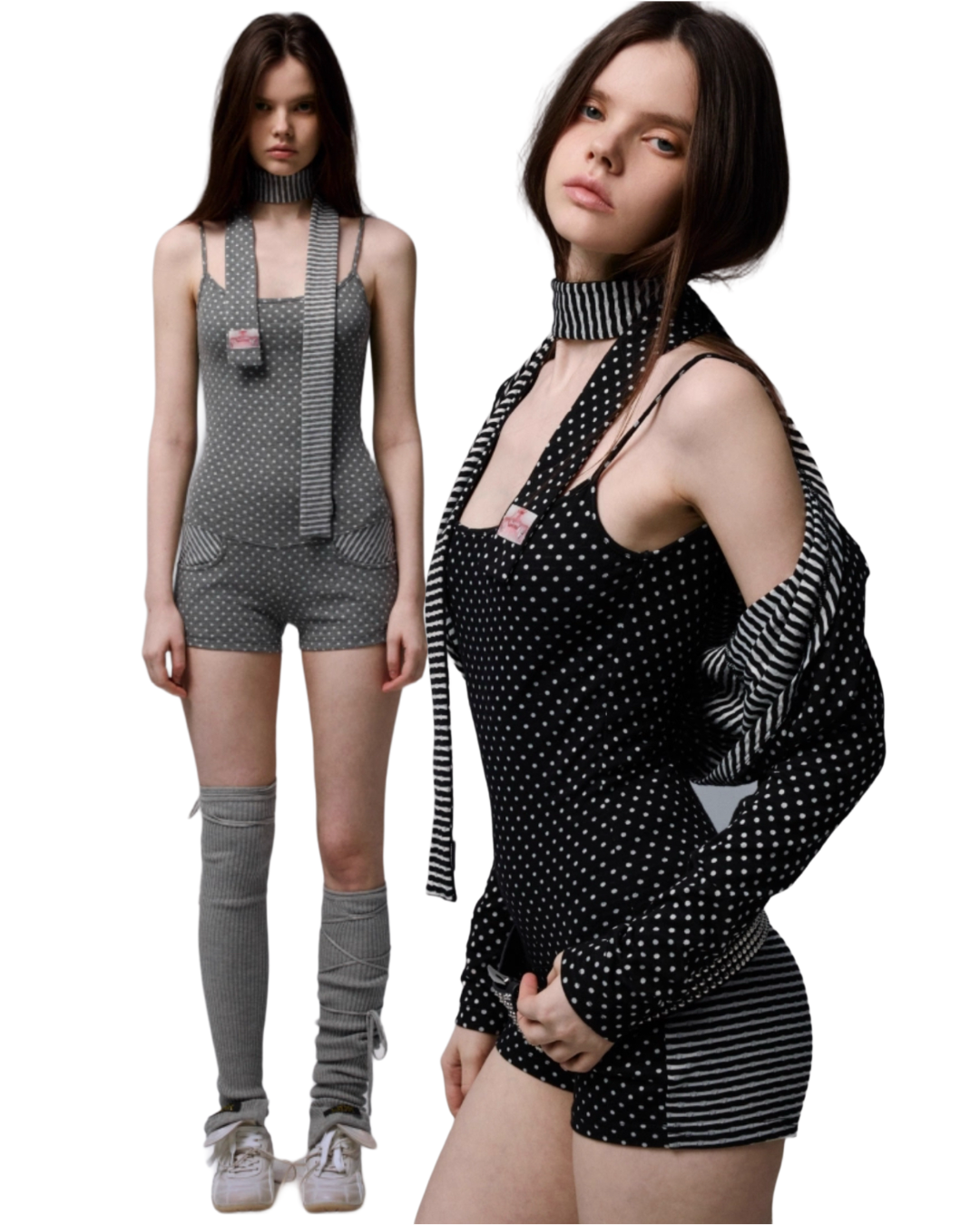 IN STOCK | POLKA DOT STRIPE BODYSUITS & SCARF – 3COLORS