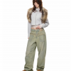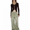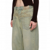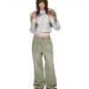 ✰ These vintage washed green wide-leg jeans feature a mid-to-low waist design, and visually elongating silhouette. The misaligned construction and heavy embroidery accents create a retro yet chic vibe. Made from non-stretch cotton fabric with an oblique texture, the jeans are both stylish and comfortable.