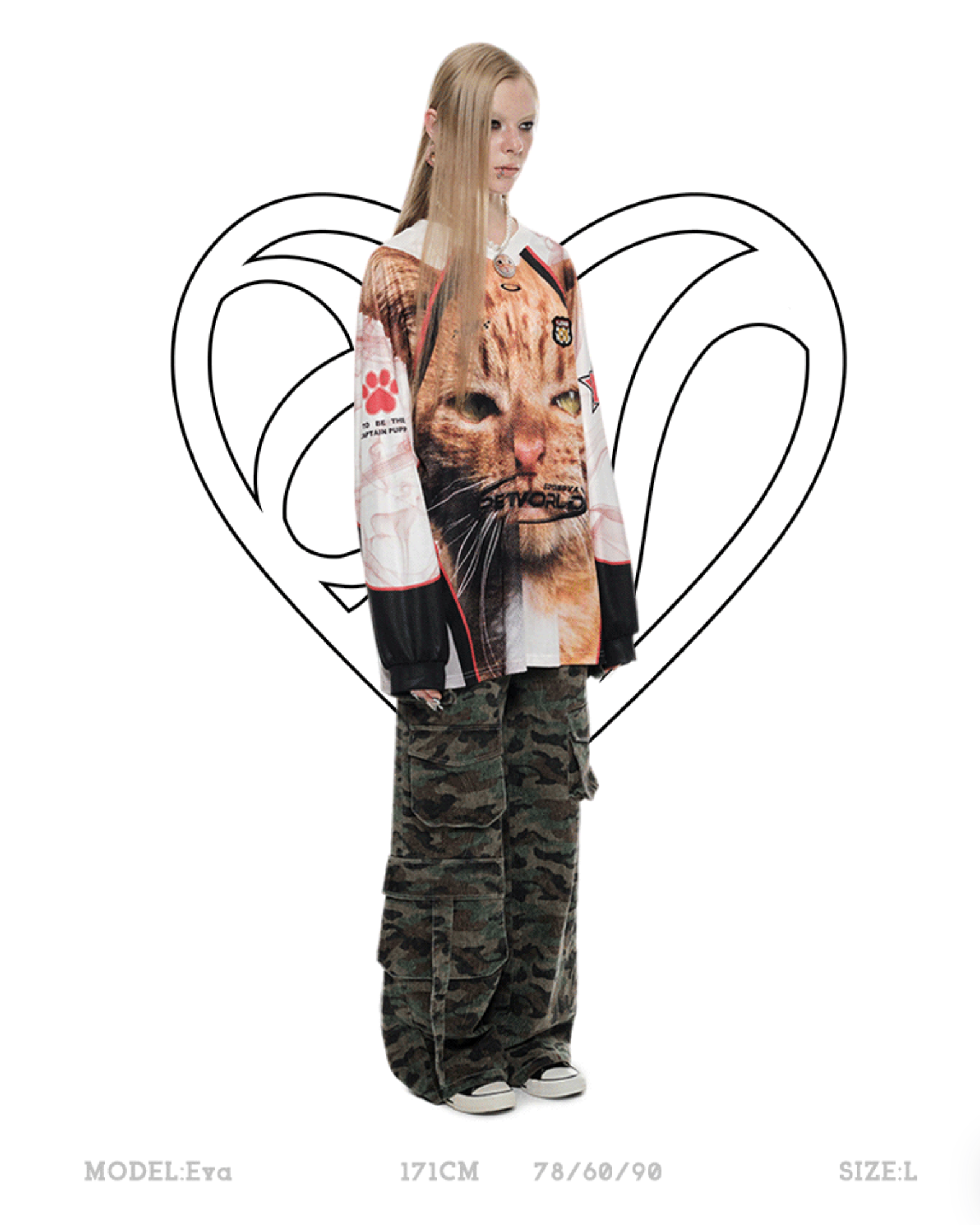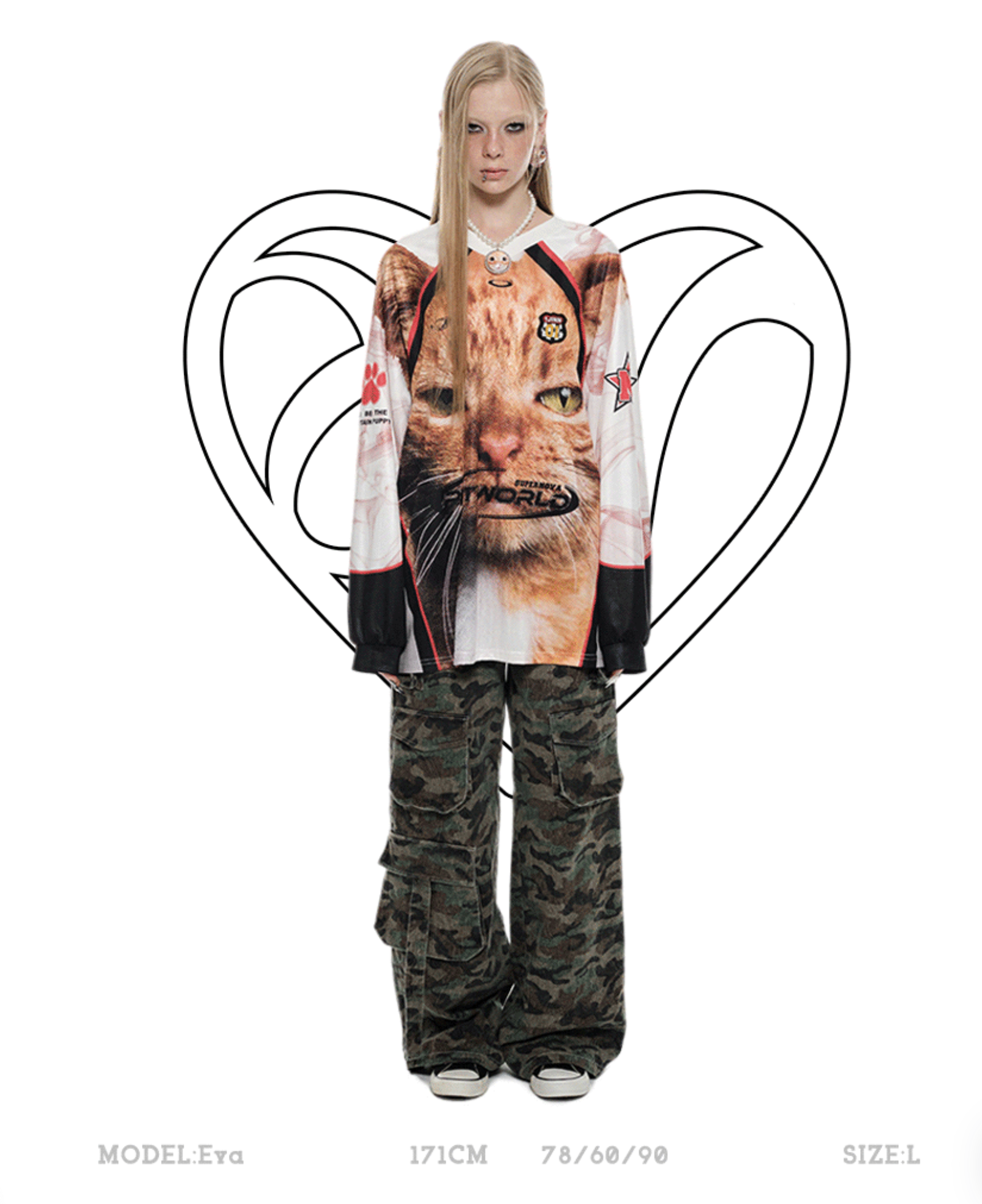 ✰ There’s never a bad time to glam up your style. Bringing Y2K drama to an everyday essential, The oversized t-shirt features one of our hand-drawn white puppy prints. Its bold graphics will show everyone that you’re a fierce – it combines white puppy and our signature 1JINN. It’s oversized with a crew neck and long sleeves – these styles remain an SHELONGZ staple.