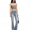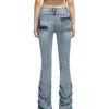 ✰ Introducing Jeans with Decorative Legs. These extraordinary pants combine a classic cut with modern, extravagant detailing, making them a unique choice for any style-conscious woman. featuring a button fastening, a waistband with belt loops, a five pocket design, a ruched design and a flare Leg.