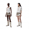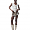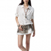 ✰ Made of twill pure cotton canvas fabric with brand – customized leopard prints mini skirt. The low rise extra wide waistband is adorned with customized matte silver buckle heads, enhancing the detail texture. The pleated skirt hem combined with side slits and overlapping pieces adds a sense of layered movement. The natural raw edge treatment showcases a casual and unruly girly charm. It can be paired with T-shirts or other items.