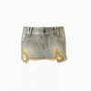 ✰ This retro-washed denim skort blends classic aesthetics. The design features heavy enzyme bleaching, double spray treatment, multi-position monkey washing, dyeing, and irregular heat pressing to enhance the layered look.. The front panel mimics a skirt, this mini denim skirt with inbuilt shorts. Crafted from slightly stretchy cotton-blend denim, it ensures a flattering fit and comfortable movement without compromising on coverage.