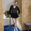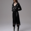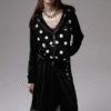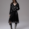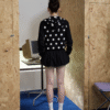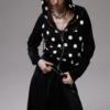 ✰ Relaxed-Fit Black Polka Dot Hoodie with Ribbed Cuffs