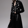 ✰ This is a black, zip-up hoodie featuring a bold, all-over pattern of large white polka dots. The hoodie has black long sleeves with ribbed cuffs. Made from a comfortable cotton-polyester blend, it features a relaxed The design is a classic and playful take on a wardrobe staple.