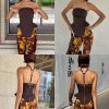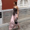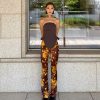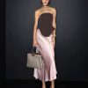 ✰ Tailoring, but for everyday. The Nami top, in a tailored brown, features a bandeau neckline with harness-style strap detail at back.