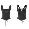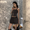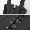 ✰ Body-con Knit Corset dark gray top with lace-up corset and frayed bottom, lace up corset allows for a perfect fit, wide straps are comfortable. Create the perfect look for a casual day with low rise ultra mini pleated skirt.