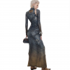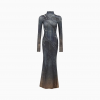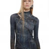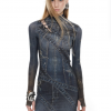 ✰ So chic This Gaultier maxi dress features a tattoo print, Stretch viscose jersey dress. Trompe l’oeil denim effect printed throughout, The long-sleeve design is constructed with an intricate lace-up detail, turtleneck, logo printed at back, breathable fabric with soft touch, comfortable to wear.