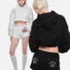 This cropped hoodie features an adorable 3D cat ear design, peppered with recurring playful cat paw print. The relaxed fit and adjustable drawstring offer ultimate comfort while maintaining a stylish look. Made from a high-quality cotton and polyester blend for a soft, comfortable feel, it is perfect for everyday wear.