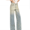 ✰ This Washing Gradient Denim Jeans features digital allover N logo brand’s print and structure using washed technology and gradient color design elements. Baggy Straight Leg Jeans is cut for a loose fit, in a gradient blue denim wash. It’s also made from high-quality denim that’s been washed to create unique silhouettes and color effects.