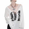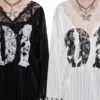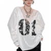 ✰ Elevate your casual wardrobe with this vintage V-Neck lace trim oversized top, featuring bold number prints for a sporty yet stylish look. The classic V-neckline adds a touch of elegance, while the playful stripes and eye-catching numbers make it a standout piece.