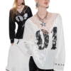 ✰ Elevate your casual wardrobe with this vintage V-Neck lace trim oversized top, featuring bold number prints for a sporty yet stylish look. The classic V-neckline adds a touch of elegance, while the playful stripes and eye-catching numbers make it a standout piece.