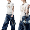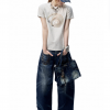 ✰ This summer vibe loose printed T – shirt features a loose and casual silhouette with a small round neck and regular shoulder design, offering great inclusivity. The original conch pattern prints, embellished with selected imported Austrian rhinestone logos, enrich the visual effect.