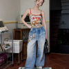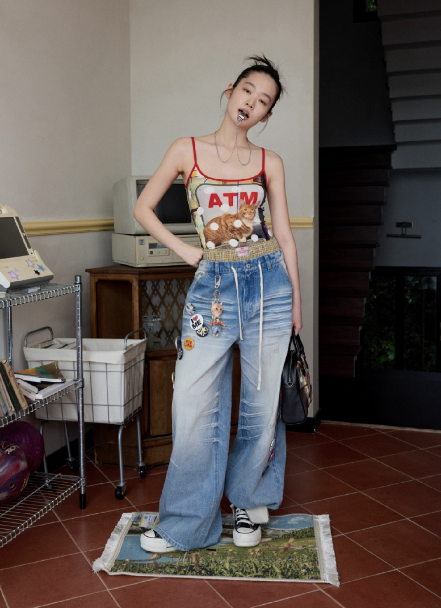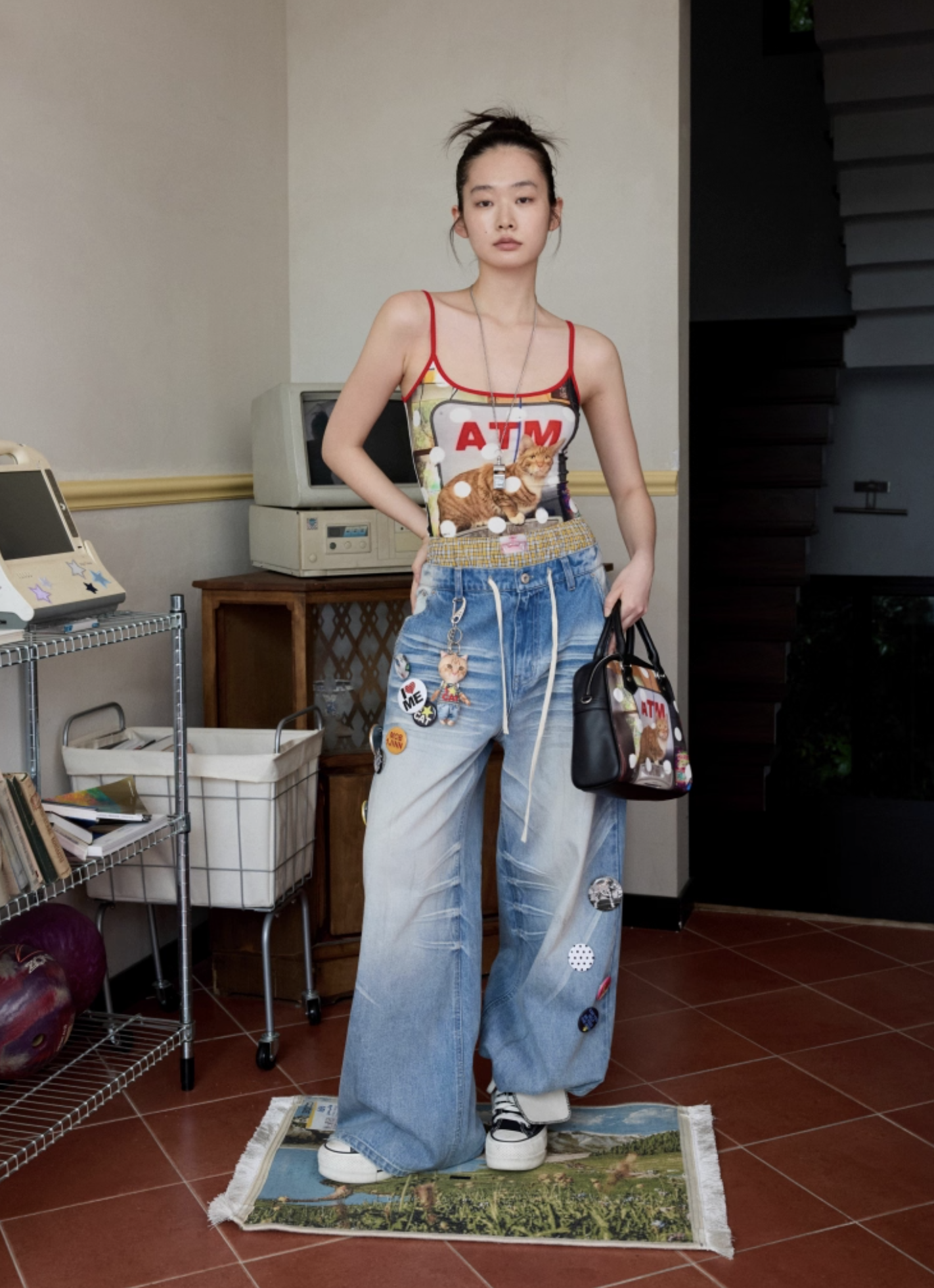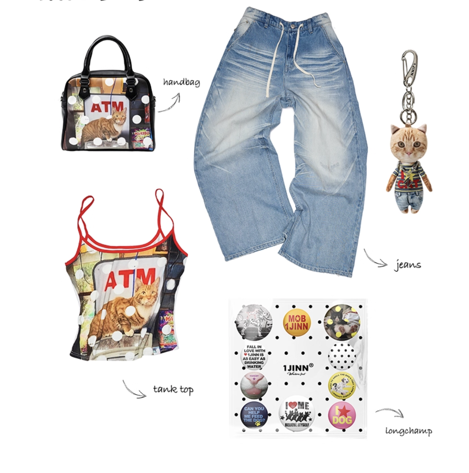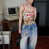 ✰ Skin friendly and breathable Modal knitted fabric. High quality regenerated fibers endow the fabric with a soft touch like baby skin. While fitting the body shape, it maintains freedom of movement. The contrasting color design of thin shoulder straps adds visual highlights. The original designed atm cat print pattern, with animal elements colliding with pop art, is playful and cute. It is with a contrasting color polka dot layer.