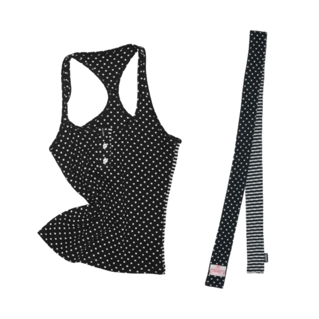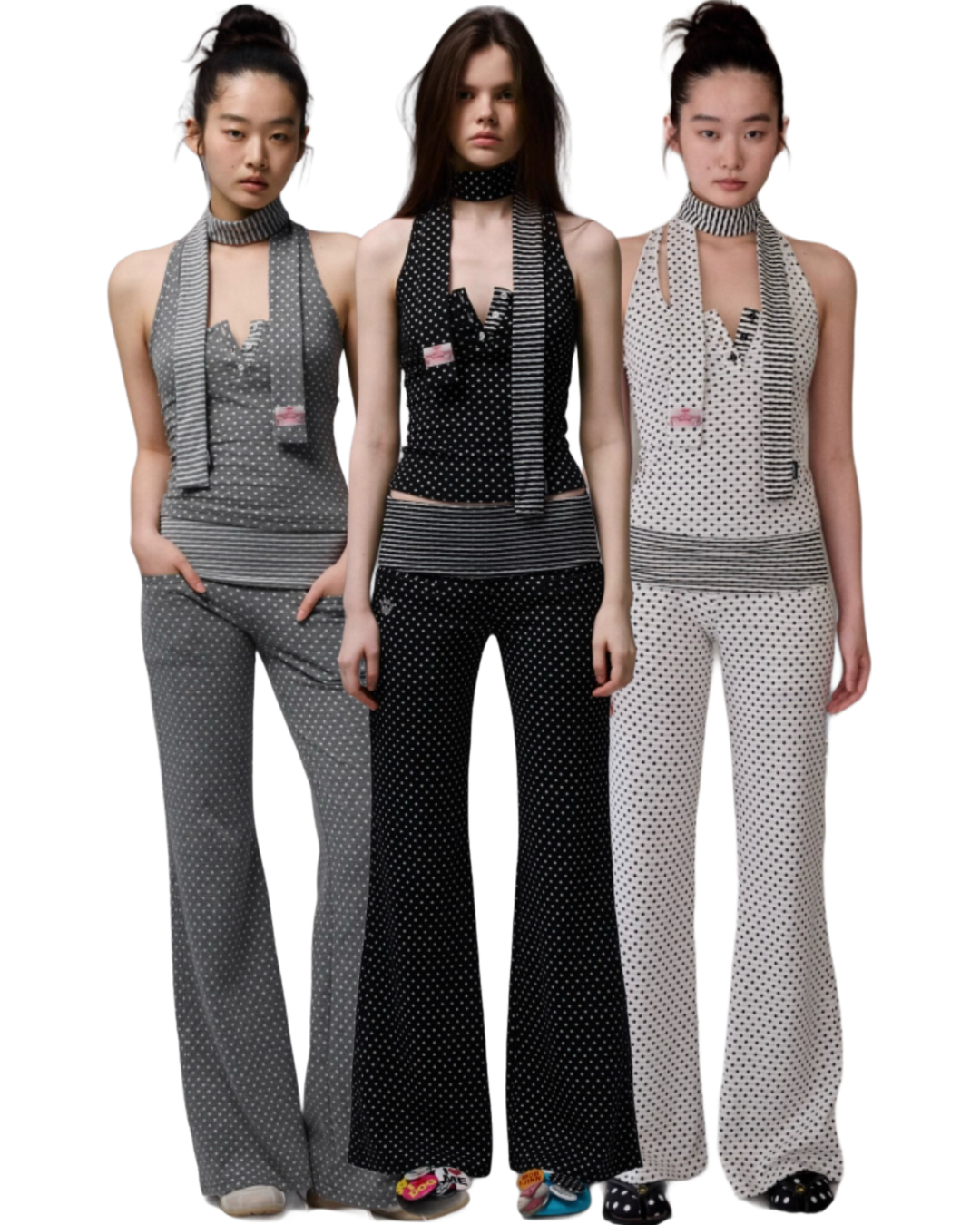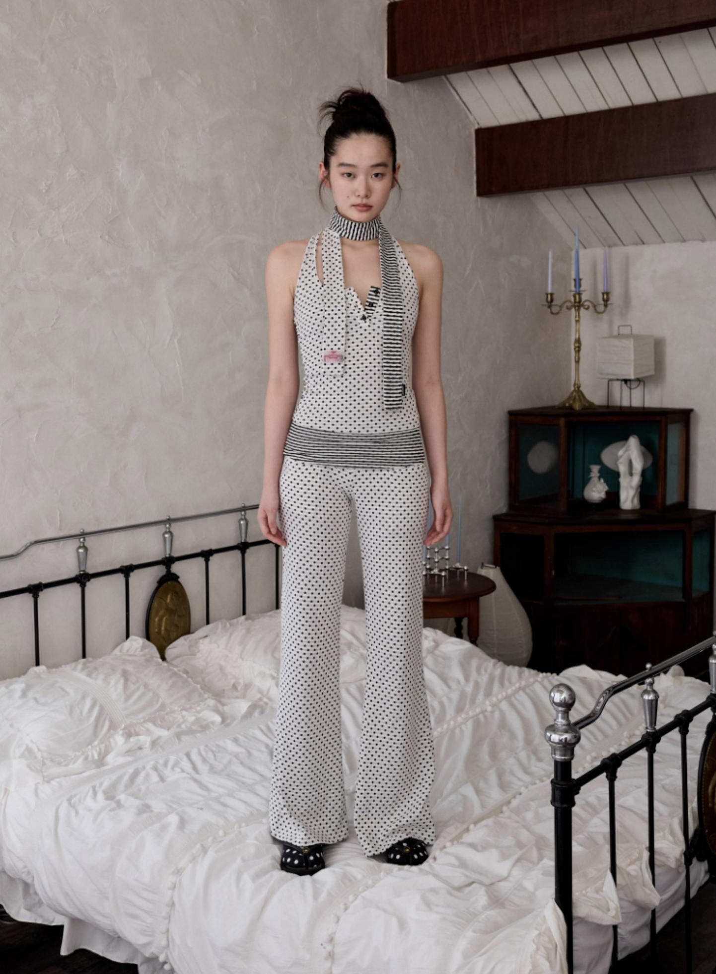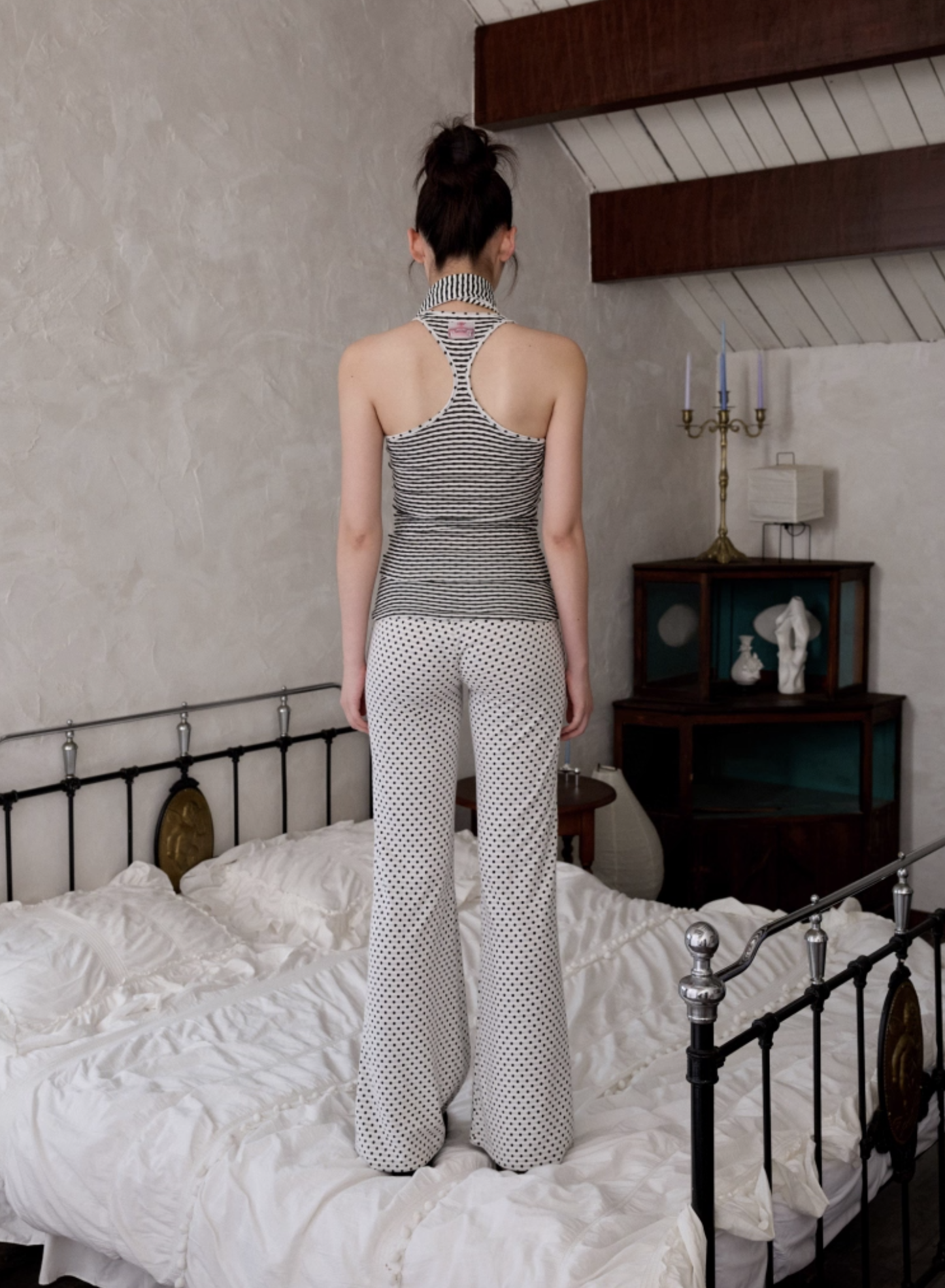 IN STOCK | POLKA DOT TANK TOP FREE SCARF & FLARED PANTS – 3COLORS