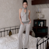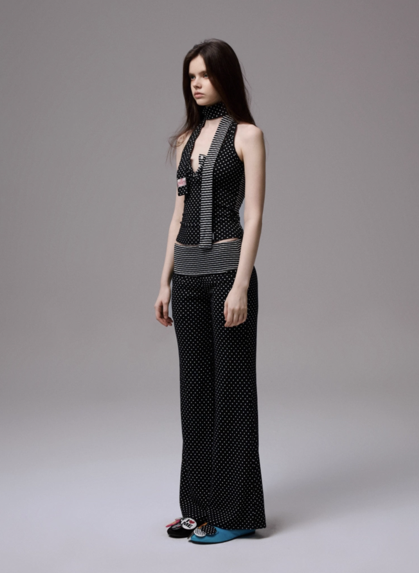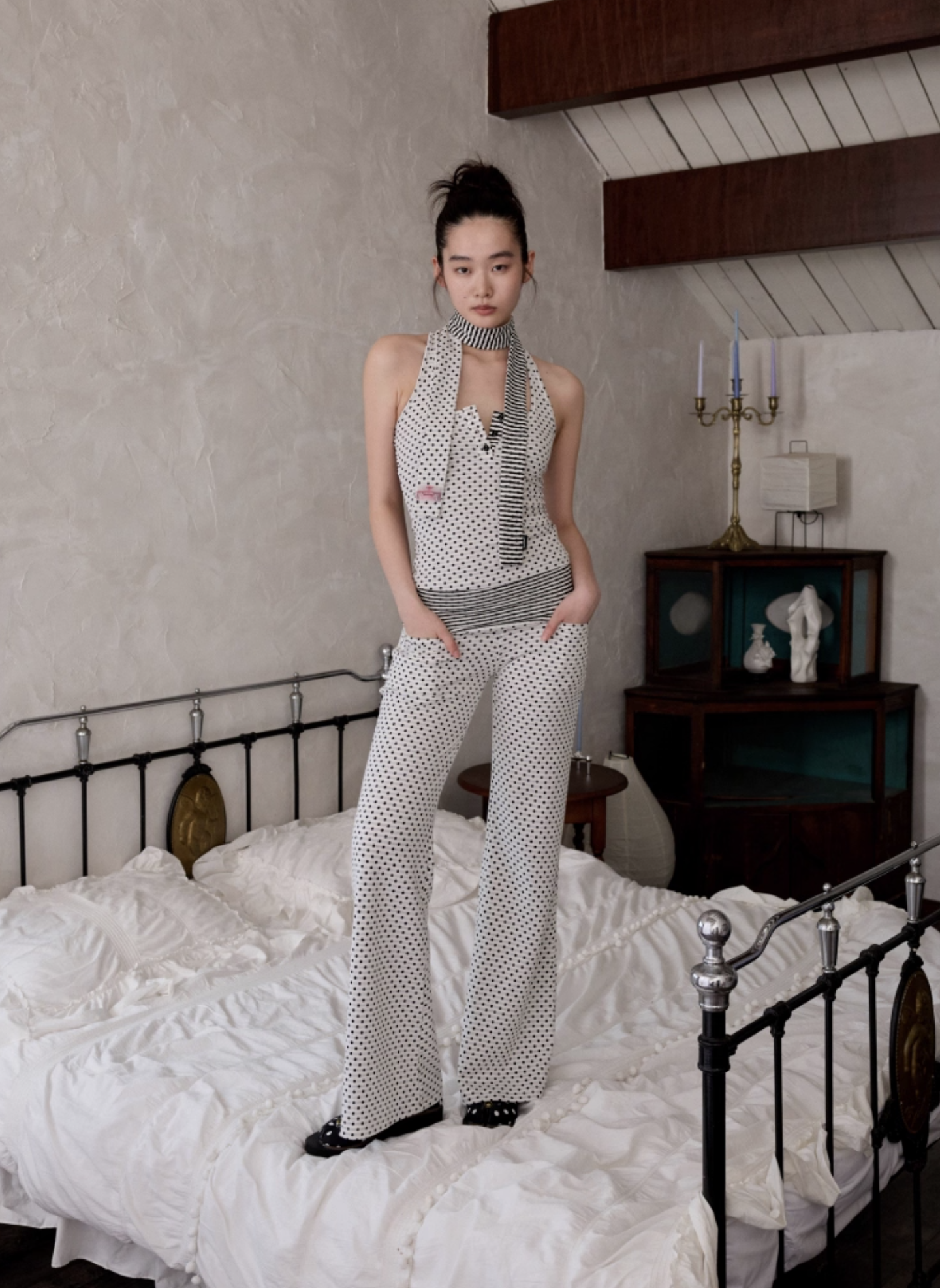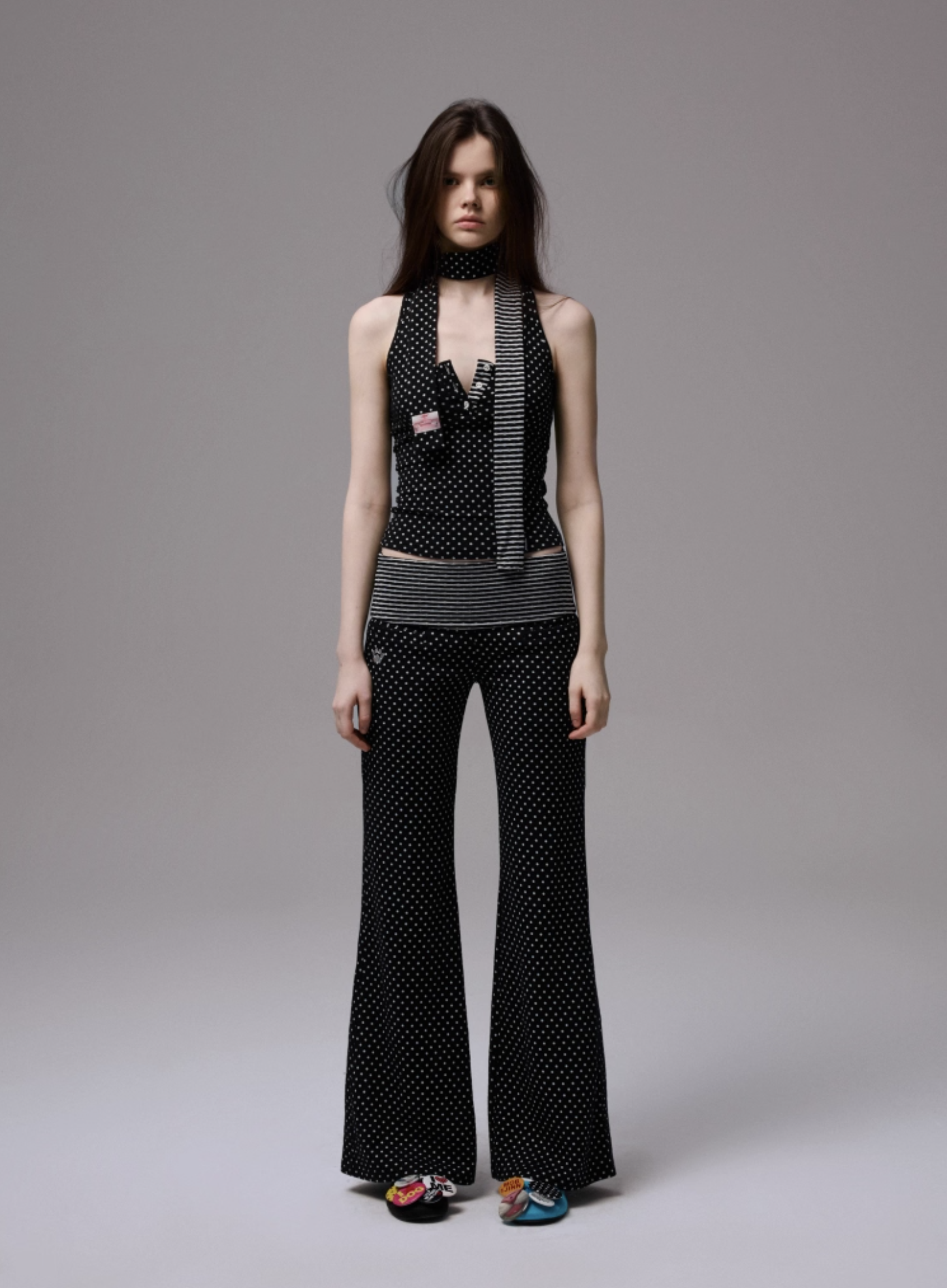IN STOCK | POLKA DOT TANK TOP FREE SCARF & FLARED PANTS – 3COLORS